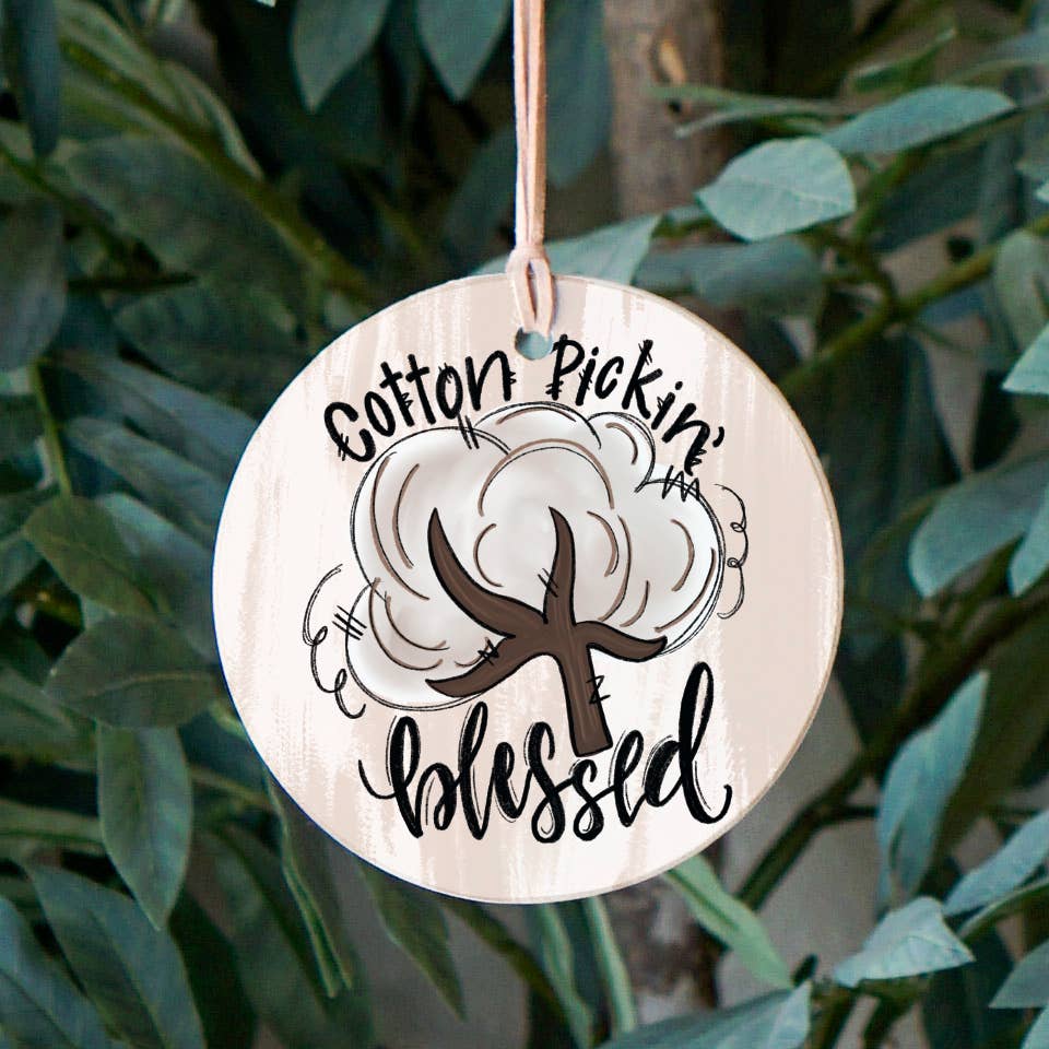 - 4-inch Round Ornament- Cotton Pickin' Blessed