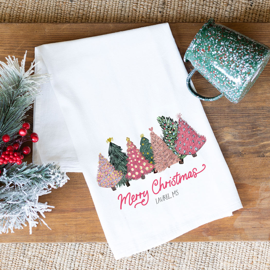 Love+Local Cotton Tea Towel | Pink Christmas Trees