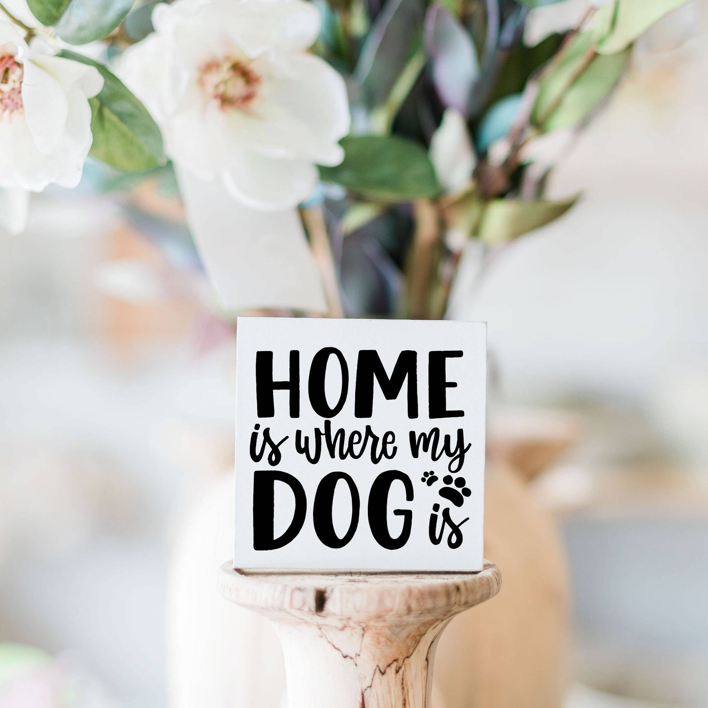 Our 3in x3in Mini Prints are handmade in our warehouse in Laurel, Mississippi. These signs are made of real high-quality wood and they come in a variety of designs. The compact square shape allows free-standing on flat surfaces around your home to add a little touch of creativity to your spaces.