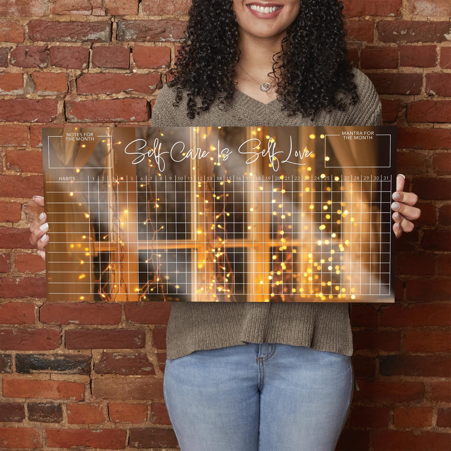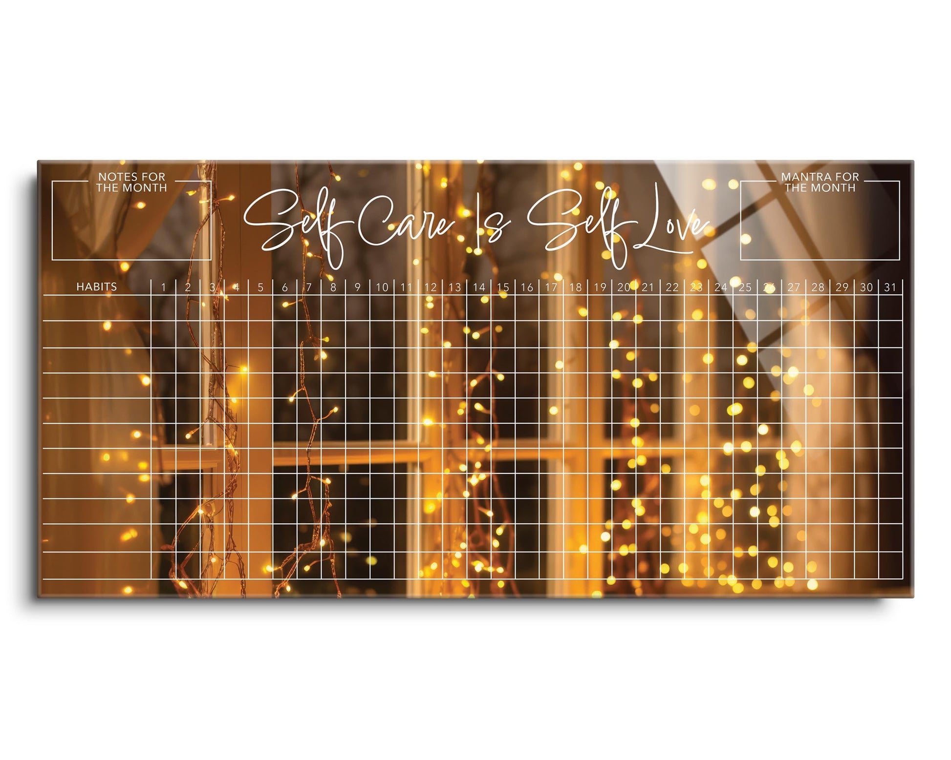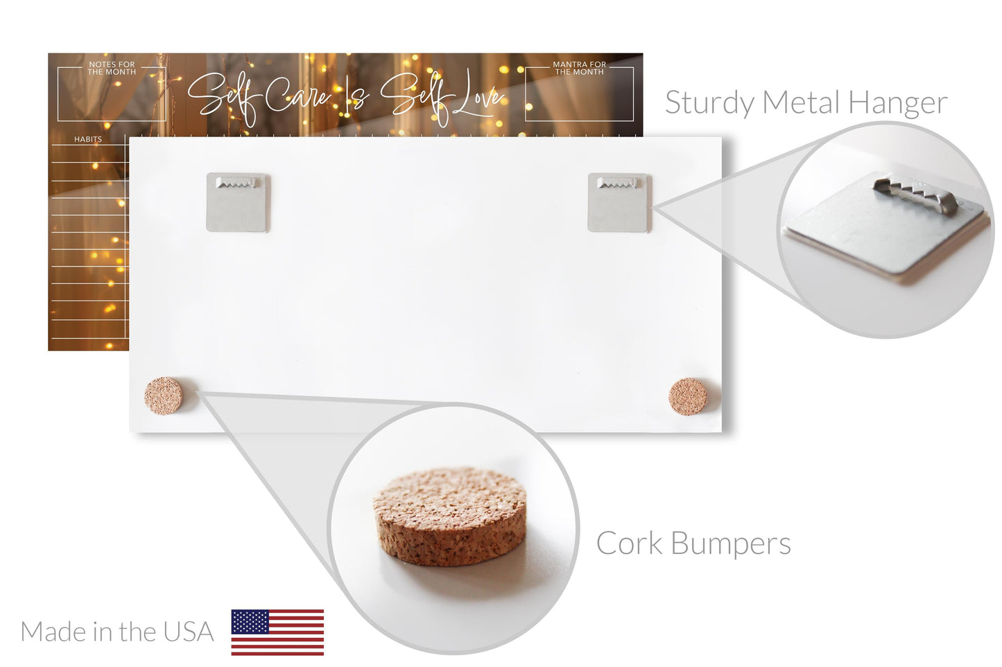 Change your life with our LIFEtrack habit trackers. Beautiful and vibrant glass, dry erase. Use with any dry erase marker. Easy to mount on sawtooth hangers. Cork bumpers on the back protect the wall surface, provide stability while using the product, and give a modern levitating effect. Eco-friendly, water-based ink provides beautiful color and rich dimension. The high-quality tempered glass is sleek, modern, and durable. Protective, efficient packaging includes 100% recyclable cardboard. Proudly printed, packaged, and shipped from the USA.
