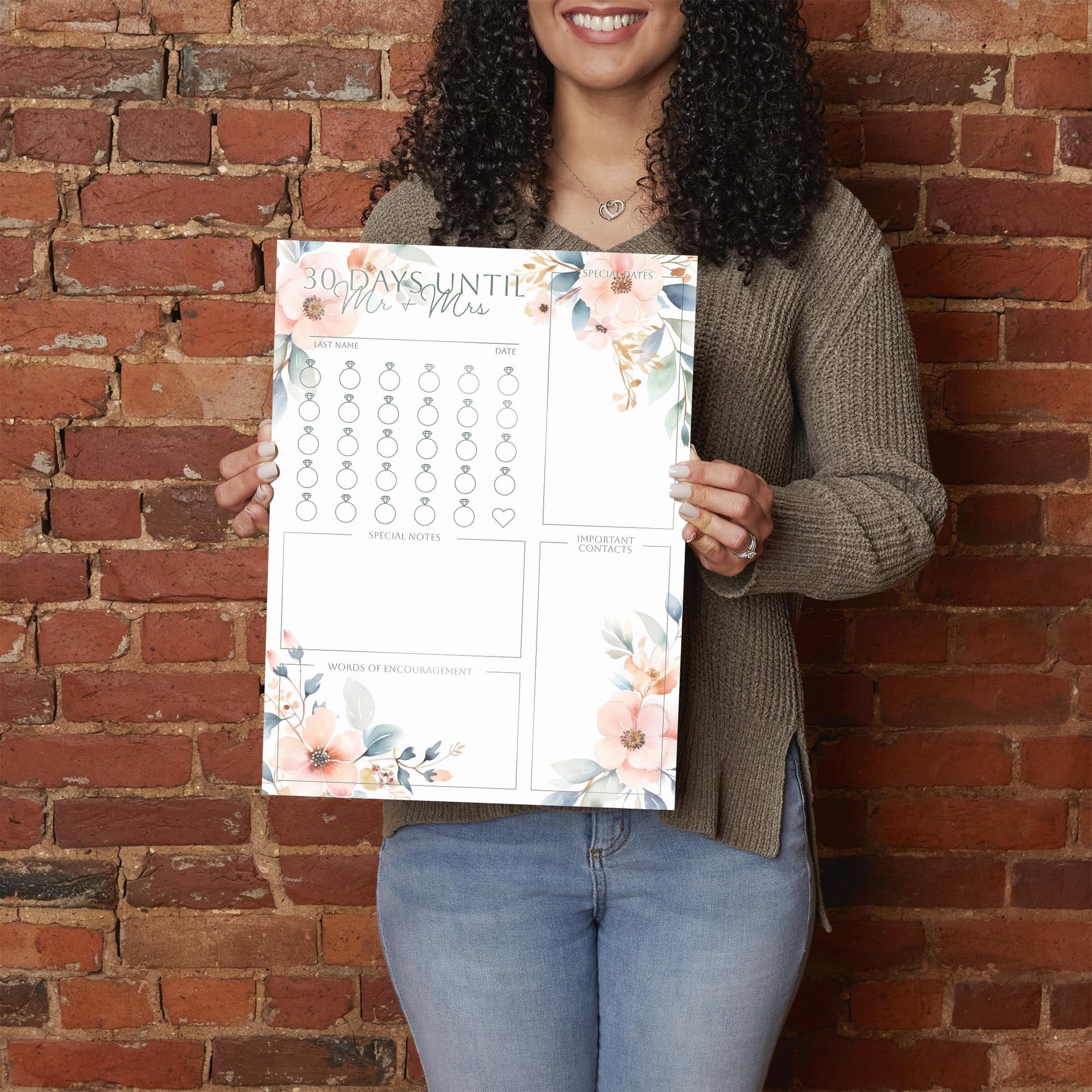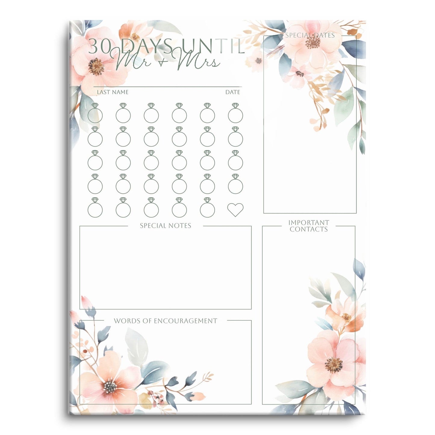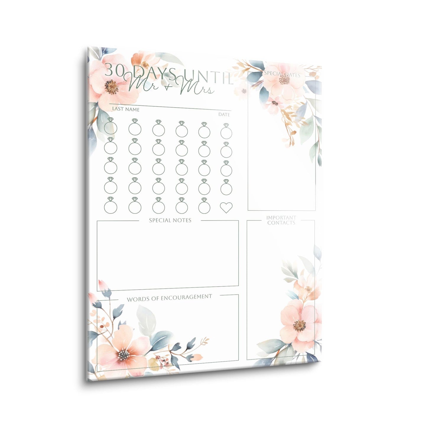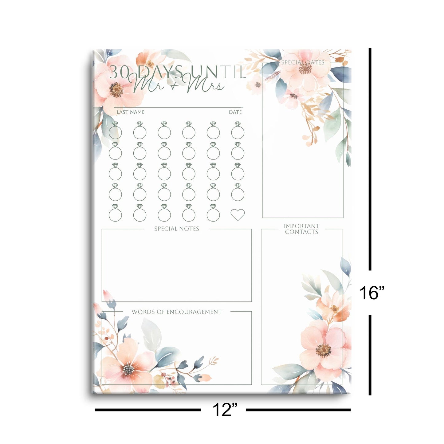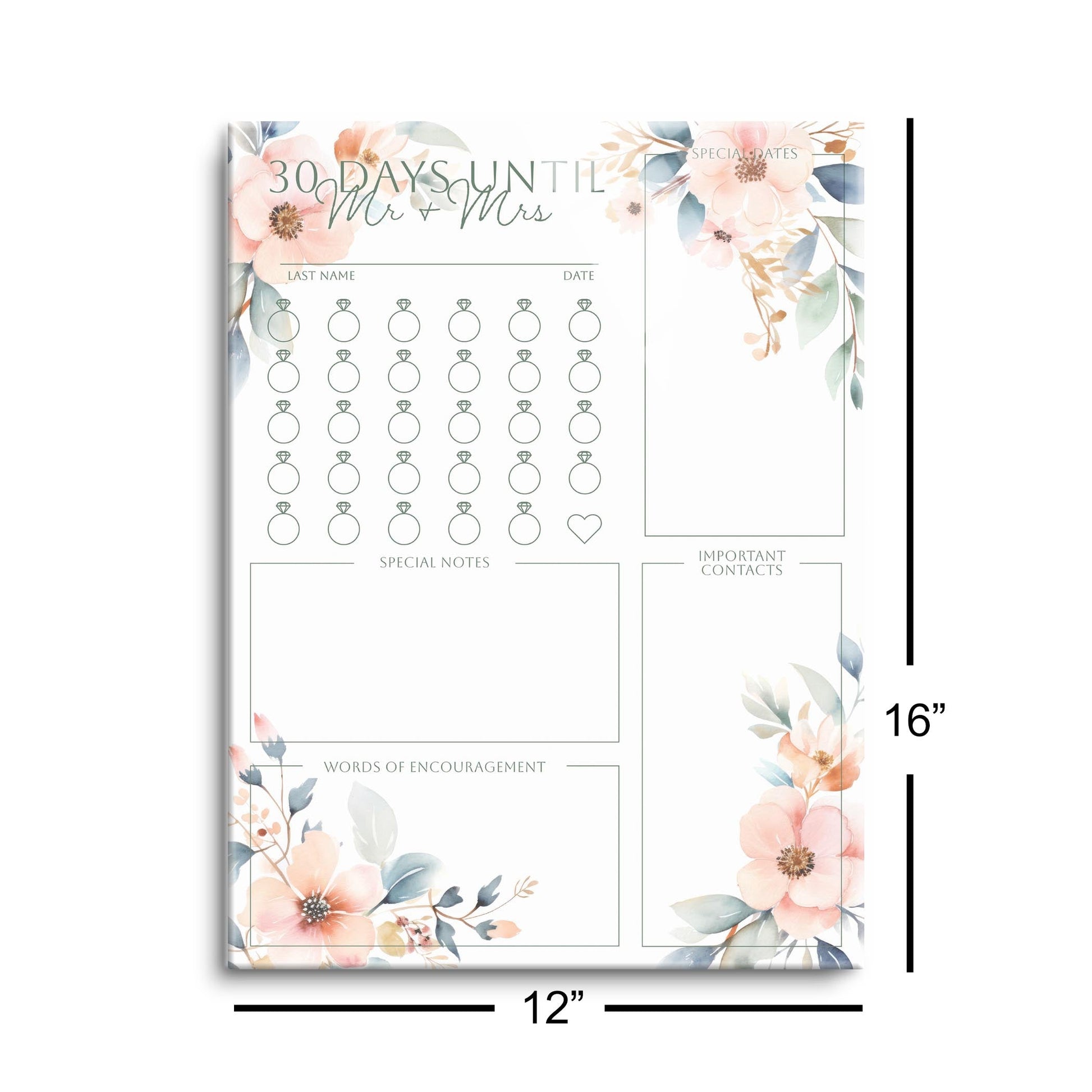 Floral Wedding Tracker On White Green Outlines | 12x16