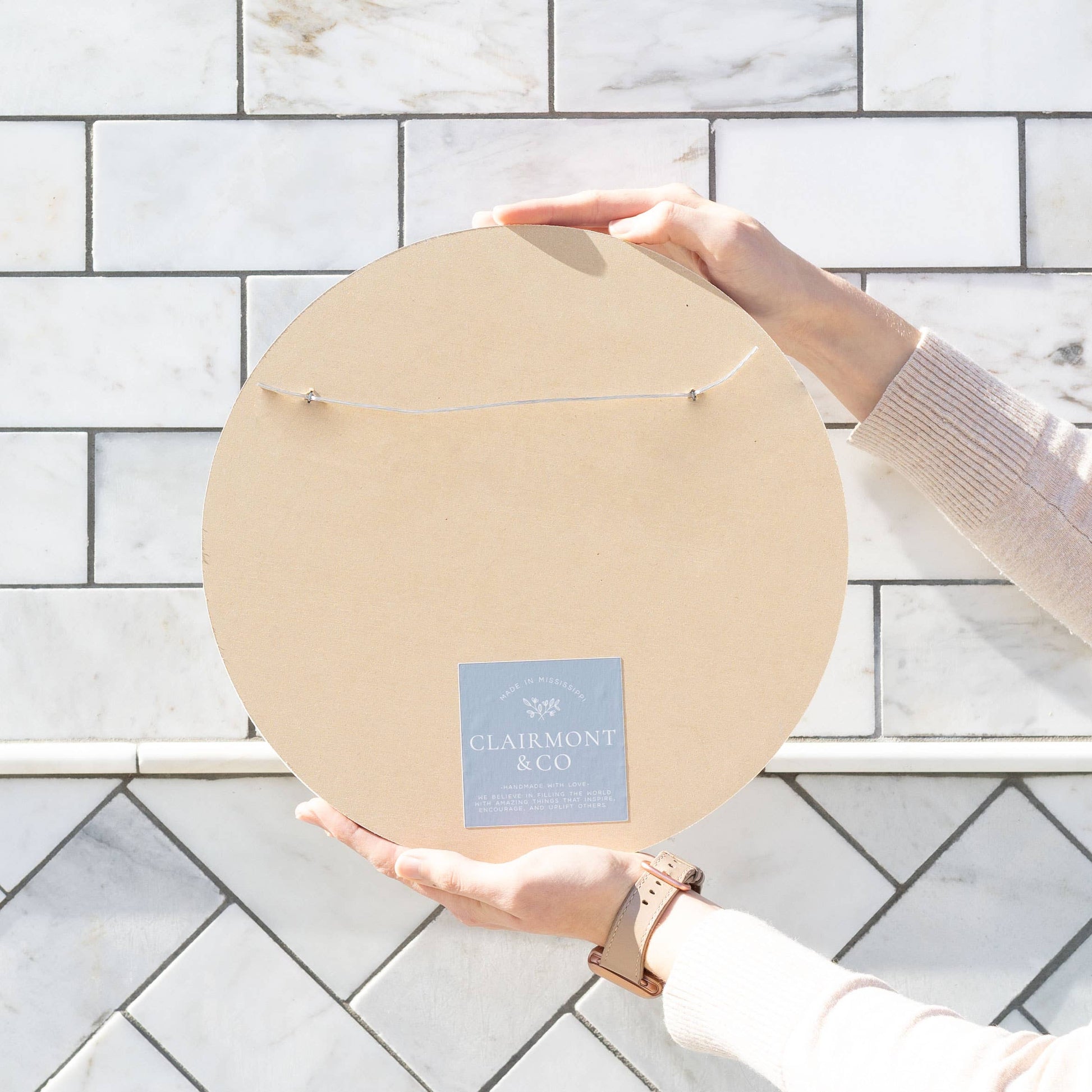 Our 12 in Round Signs are handmade in our warehouse in Laurel, Mississippi. These signs are made of real wood and come in a variety of designs. You will love these hanging in different areas in your home to add personality to your desired spaces.