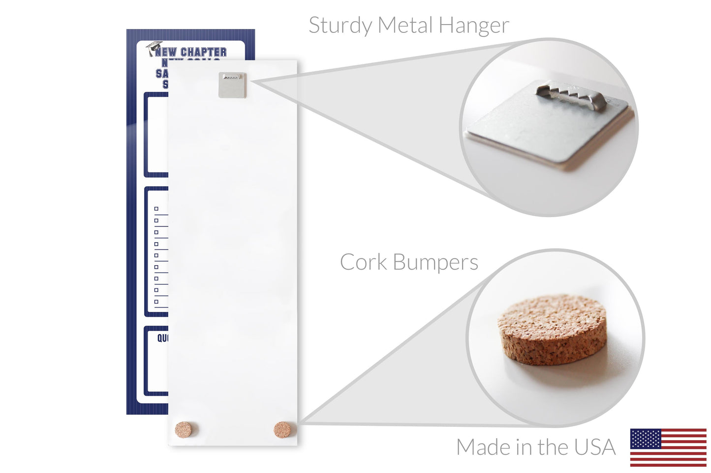 Change your life with our LIFEtrack habit trackers. Beautiful and vibrant glass, dry erase. Use with any dry erase marker. Easy to mount on sawtooth hangers. Cork bumpers on the back protect the wall surface, provide stability while using the product, and give a modern levitating effect. Eco-friendly, water-based ink provides beautiful color and rich dimension. The high-quality tempered glass is sleek, modern, and durable. Protective, efficient packaging includes 100% recyclable cardboard. Proudly printed, packaged, and shipped from the USA.