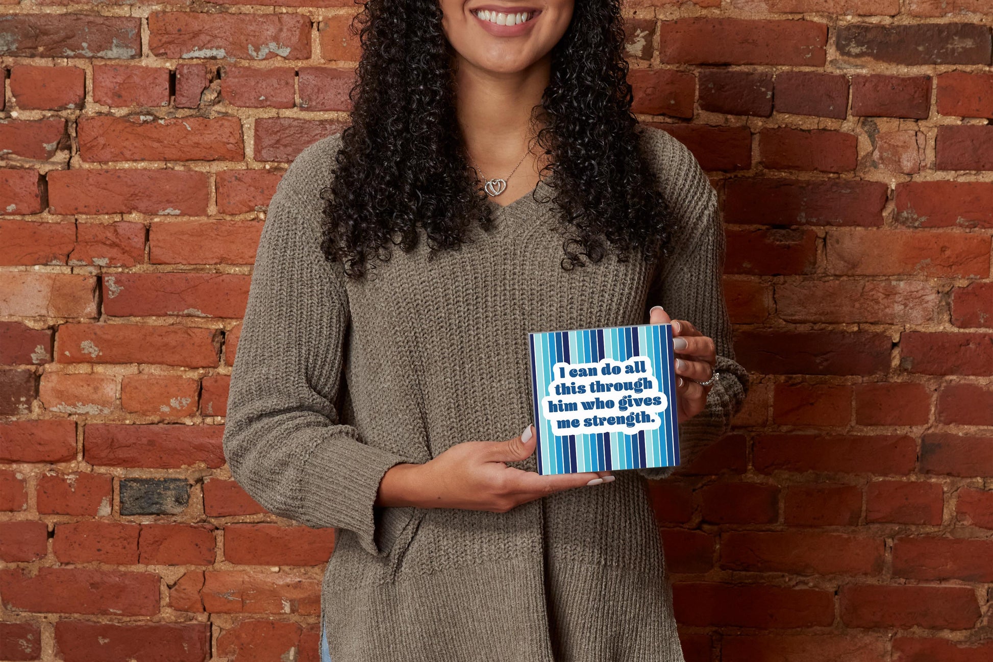 These 5 inch by 5 inch wood block signs fit any setting! They require no hardware, and the hollow back design feely stands on its own or can be hung on the wall. Perfect for desks, mantels, counters, or shelves. The beautiful texture of the wood and vibrancy of ink are a great pairing. Our eco-friendly, water-based ink provides beautiful color and dimension, and all our wood blocks are made from upcycled compressed wood fiber. Printed and packaged in the USA.