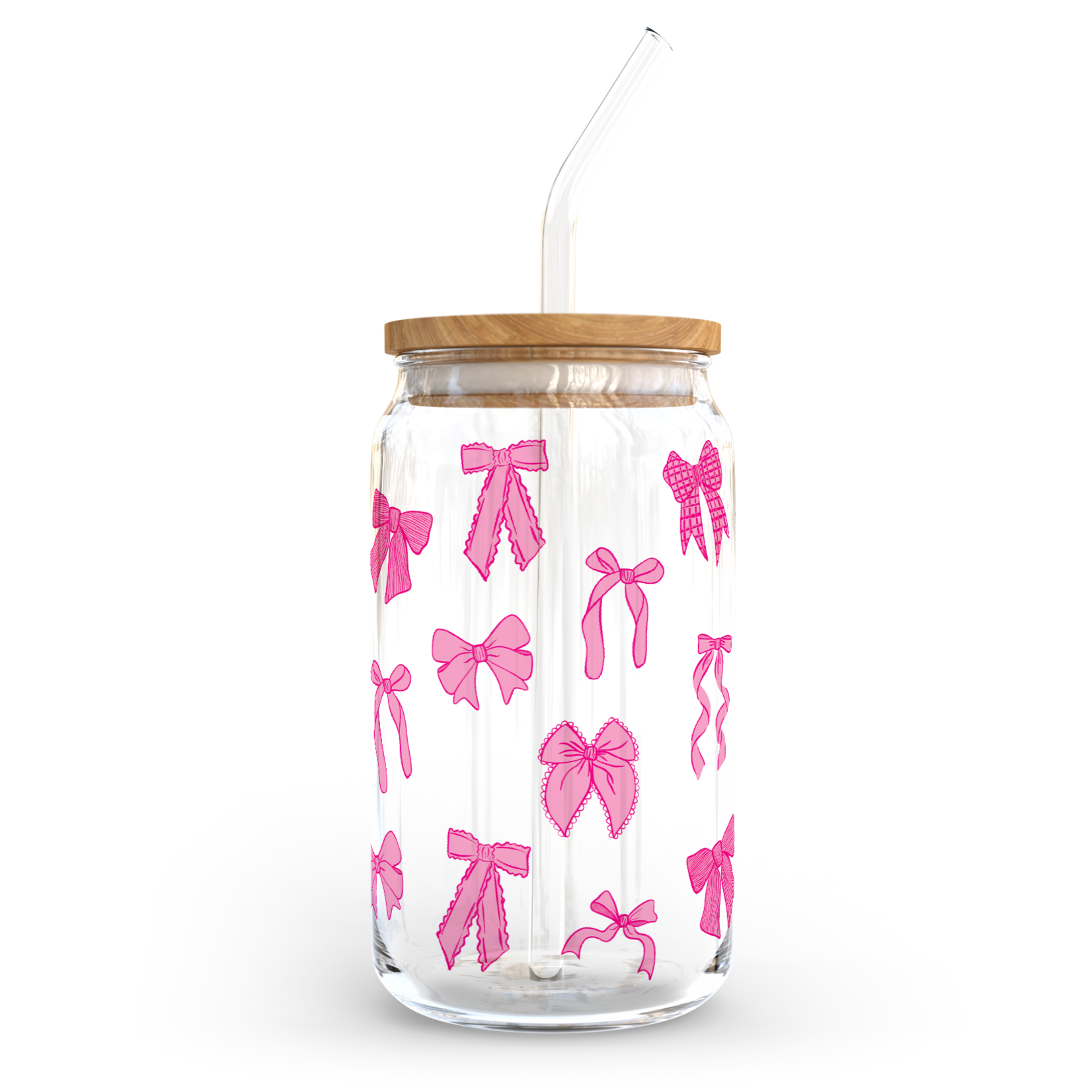 Preppy Bows 16oz. Glass Tumbler | Pink Preppy Bows
