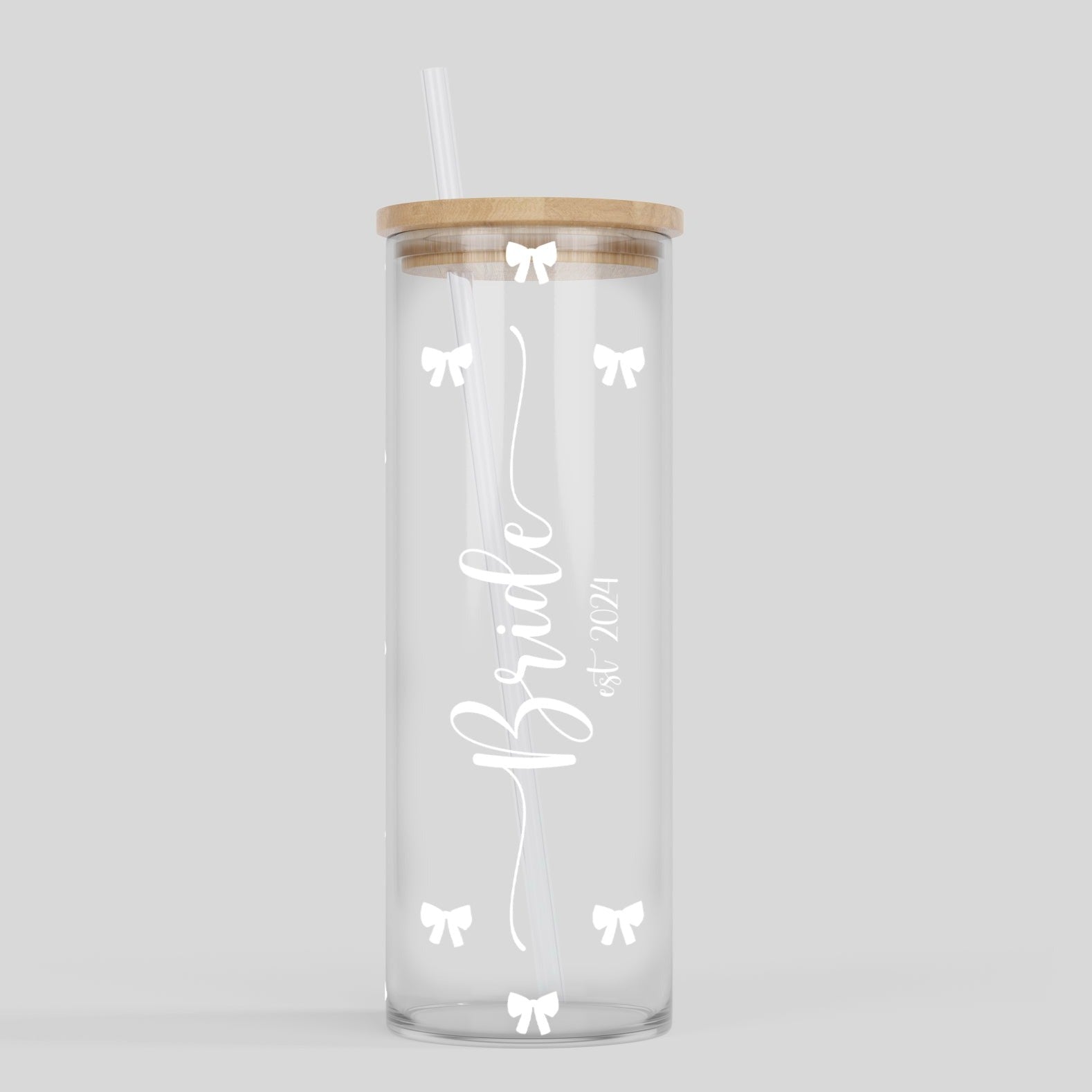 Wedding 24oz. Glass Tumbler | Bride EST Bows