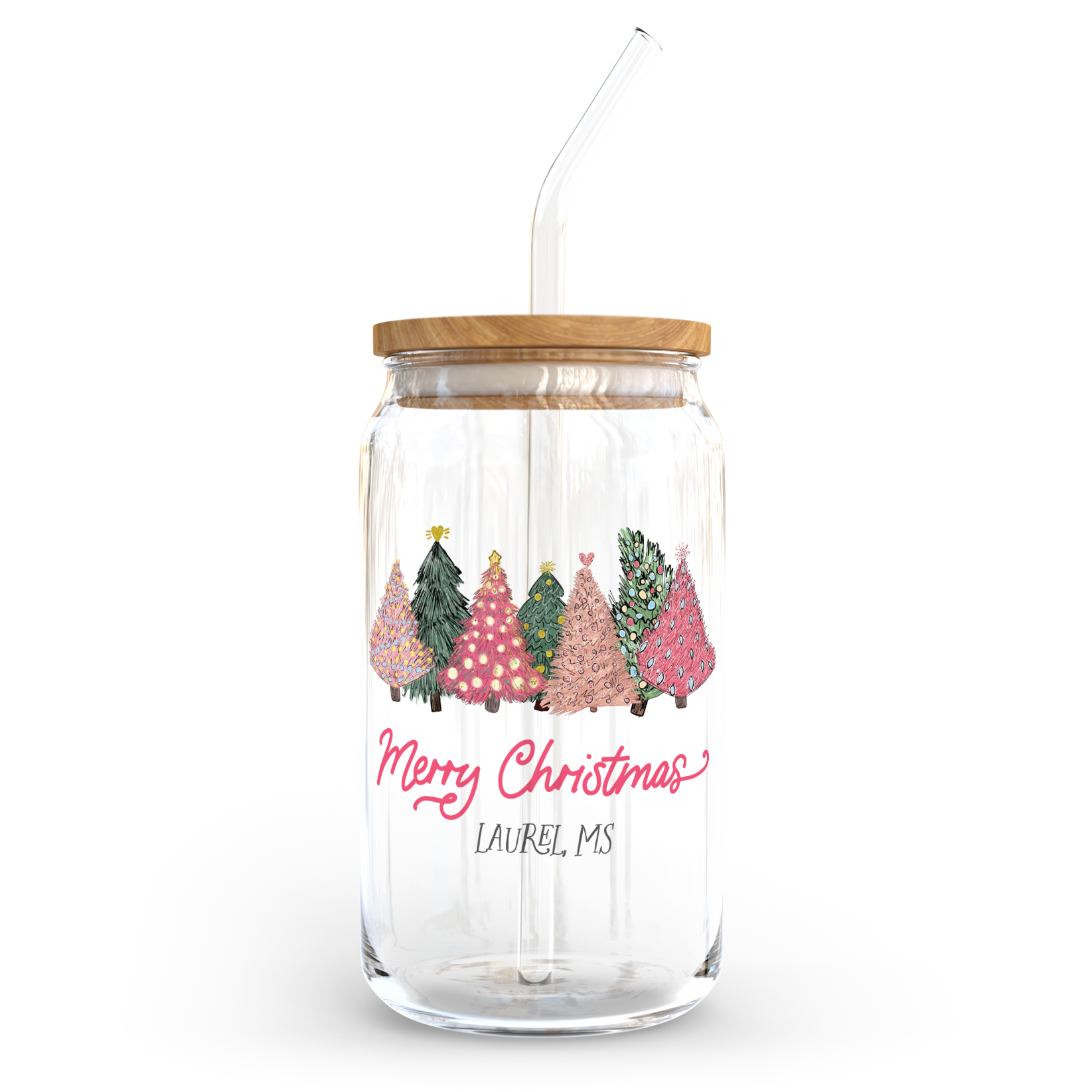 Love+Local 16oz. Glass Tumbler | Pink Christmas Trees
