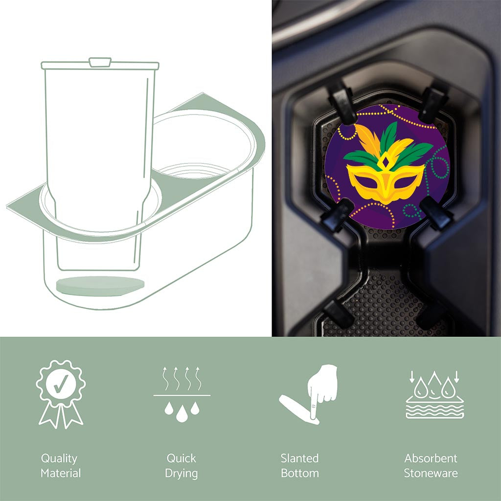 Car coasters are that little accessory that you didn’t know you needed but now consider an essential. Your cupholders are protected and kept clean by absorbing drips from your morning coffee to sticky juice boxes. The strategic divot edge allows you to easily pop it out and wipe clean. No more grime stuck in the cupholder abyss. While car coasters are wonderfully utilitarian, they also inject a little personality and design into the space you spend so much time in. Order an assortment to mix and match to the season or newest trends.