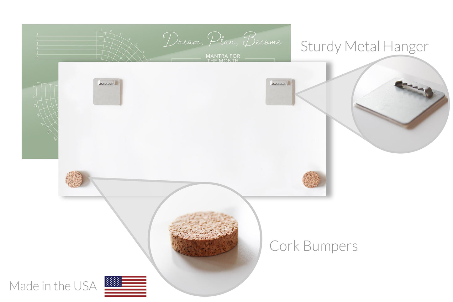 Change your life with our LIFEtrack habit trackers. Beautiful and vibrant glass, dry erase. Use with any dry erase marker. Easy to mount on sawtooth hangers. Cork bumpers on the back protect the wall surface, provide stability while using the product, and give a modern levitating effect. Eco-friendly, water-based ink provides beautiful color and rich dimension. The high-quality tempered glass is sleek, modern, and durable. Protective, efficient packaging includes 100% recyclable cardboard. Proudly printed, packaged, and shipped from the USA.