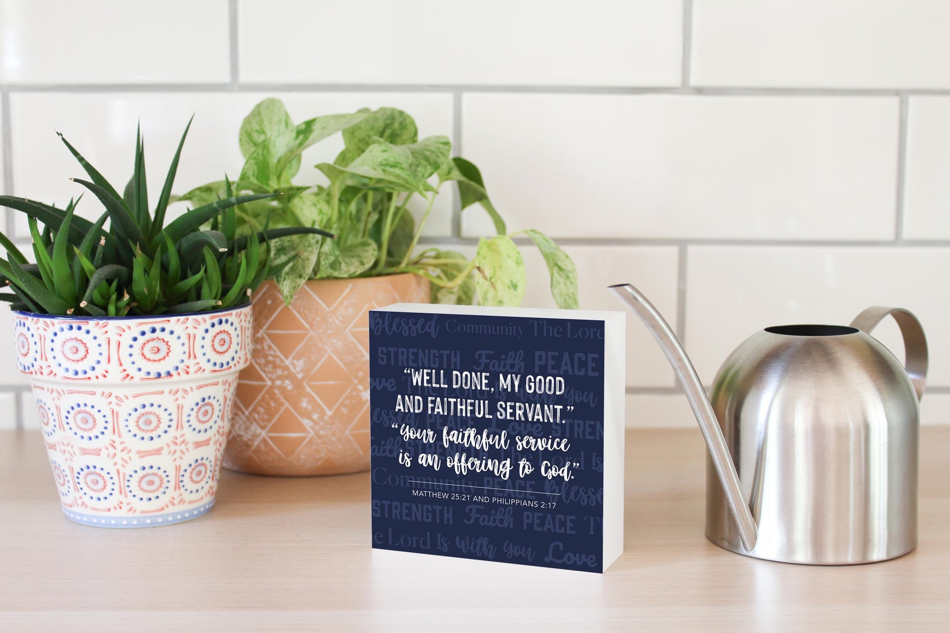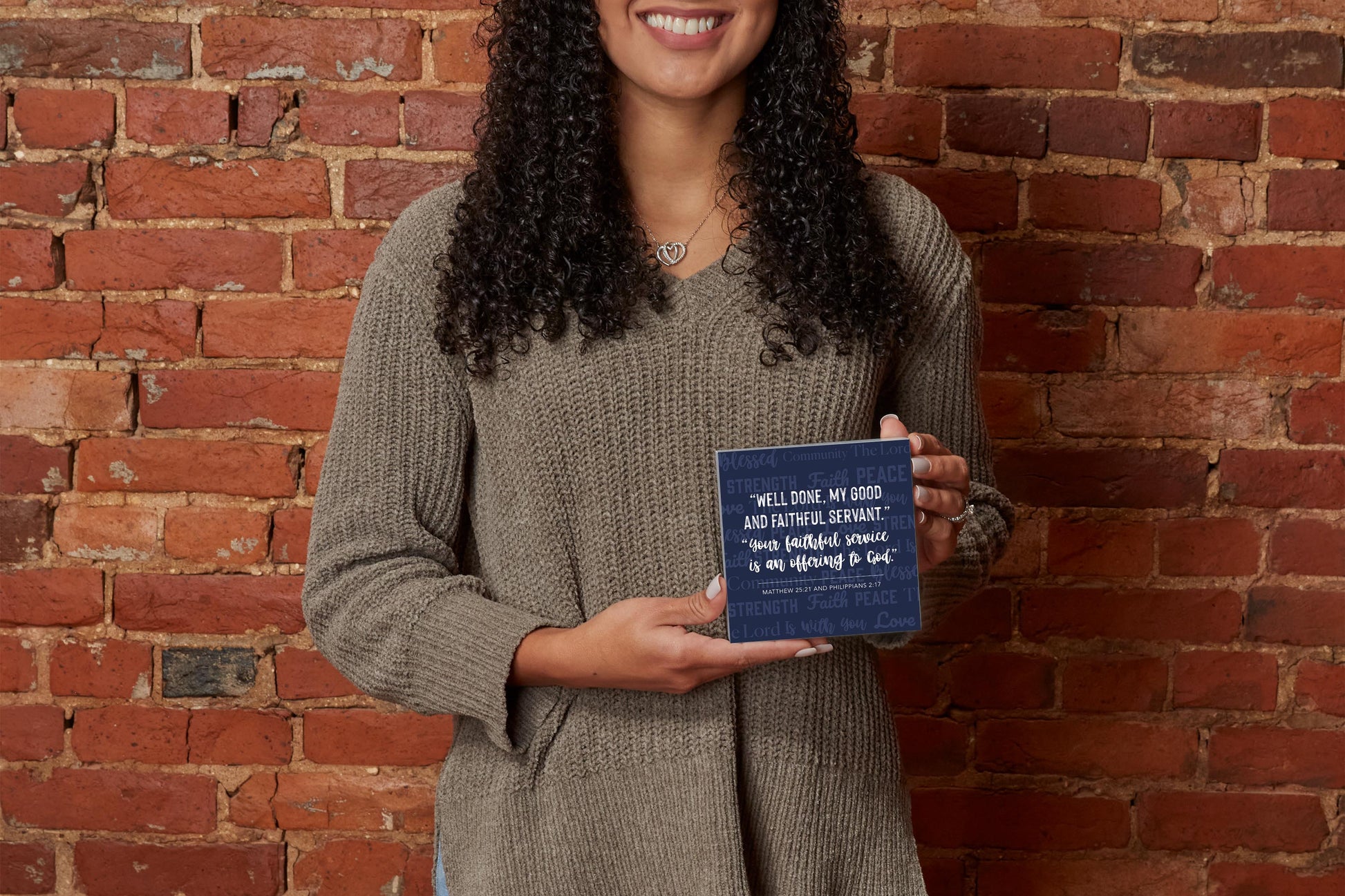 These 5 inch by 5 inch wood block signs fit any setting! They require no hardware, and the hollow back design feely stands on its own or can be hung on the wall. Perfect for desks, mantels, counters, or shelves. The beautiful texture of the wood and vibrancy of ink are a great pairing. Our eco-friendly, water-based ink provides beautiful color and dimension, and all our wood blocks are made from upcycled compressed wood fiber. Printed and packaged in the USA.