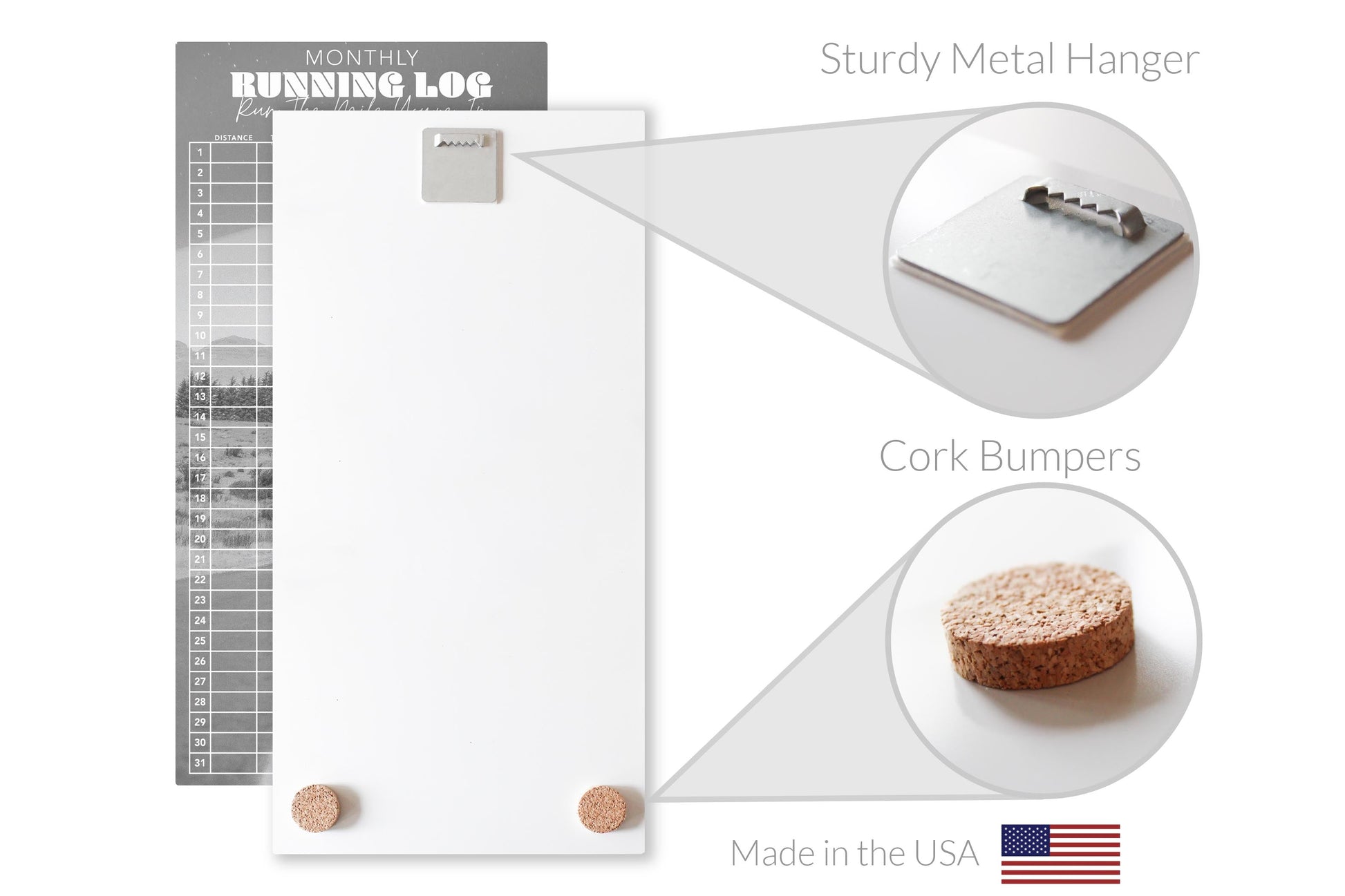 Change your life with our LIFEtrack habit trackers. Beautiful and vibrant glass, dry erase. Use with any dry erase marker. Easy to mount on sawtooth hangers. Cork bumpers on the back protect the wall surface, provide stability while using the product, and give a modern levitating effect. Eco-friendly, water-based ink provides beautiful color and rich dimension. The high-quality tempered glass is sleek, modern, and durable. Protective, efficient packaging includes 100% recyclable cardboard. Proudly printed, packaged, and shipped from the USA.