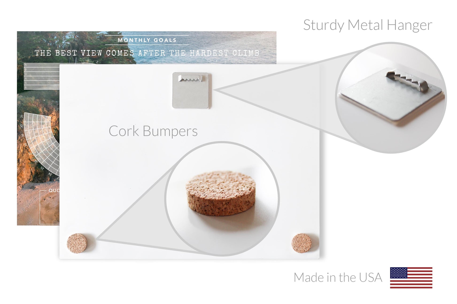 Change your life with our LIFEtrack habit trackers. Beautiful and vibrant glass, dry erase. Use with any dry erase marker. Easy to mount on sawtooth hangers. Cork bumpers on the back protect the wall surface, provide stability while using the product, and give a modern levitating effect. Eco-friendly, water-based ink provides beautiful color and rich dimension. The high-quality tempered glass is sleek, modern, and durable. Protective, efficient packaging includes 100% recyclable cardboard. Proudly printed, packaged, and shipped from the USA.