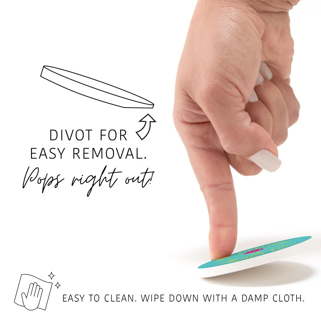 Merchandised in a versatile polybag 2-set, car coasters are that little accessory that you didn’t know you needed but now consider an essential. Your cupholders are protected and kept clean by absorbing drips from your morning coffee to sticky juice boxes. The strategic divot edge allows you to easily pop it out and wipe clean. No more grime stuck in the cupholder abyss. While car coasters are wonderfully utilitarian, they also inject a little personality and design into the space you spend so much time in. Order an assortment to mix and match to the season or newest trends.