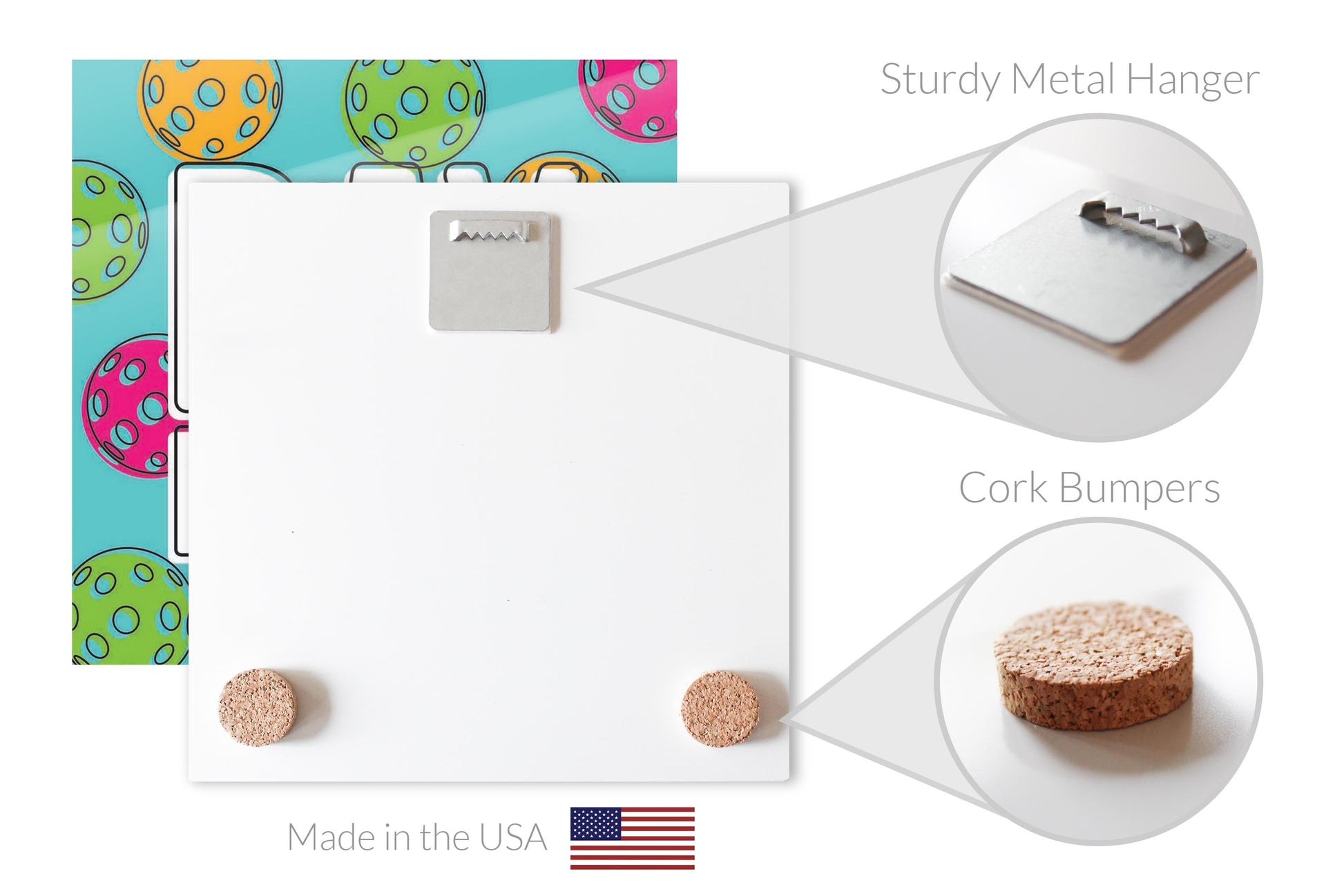 Beautiful and vibrant glass, dry erase. Use with any dry erase marker. Easy to mount on sawtooth hangers. Cork bumpers on the back protect the wall surface, provide stability while using the product, and give a modern levitating effect. Eco-friendly, water-based ink provides beautiful color and rich dimension. The high-quality tempered glass is sleek, modern, and durable. Protective, efficient packaging includes 100% recyclable cardboard.ย Proudly printed, packaged, and shipped from the USA.ย