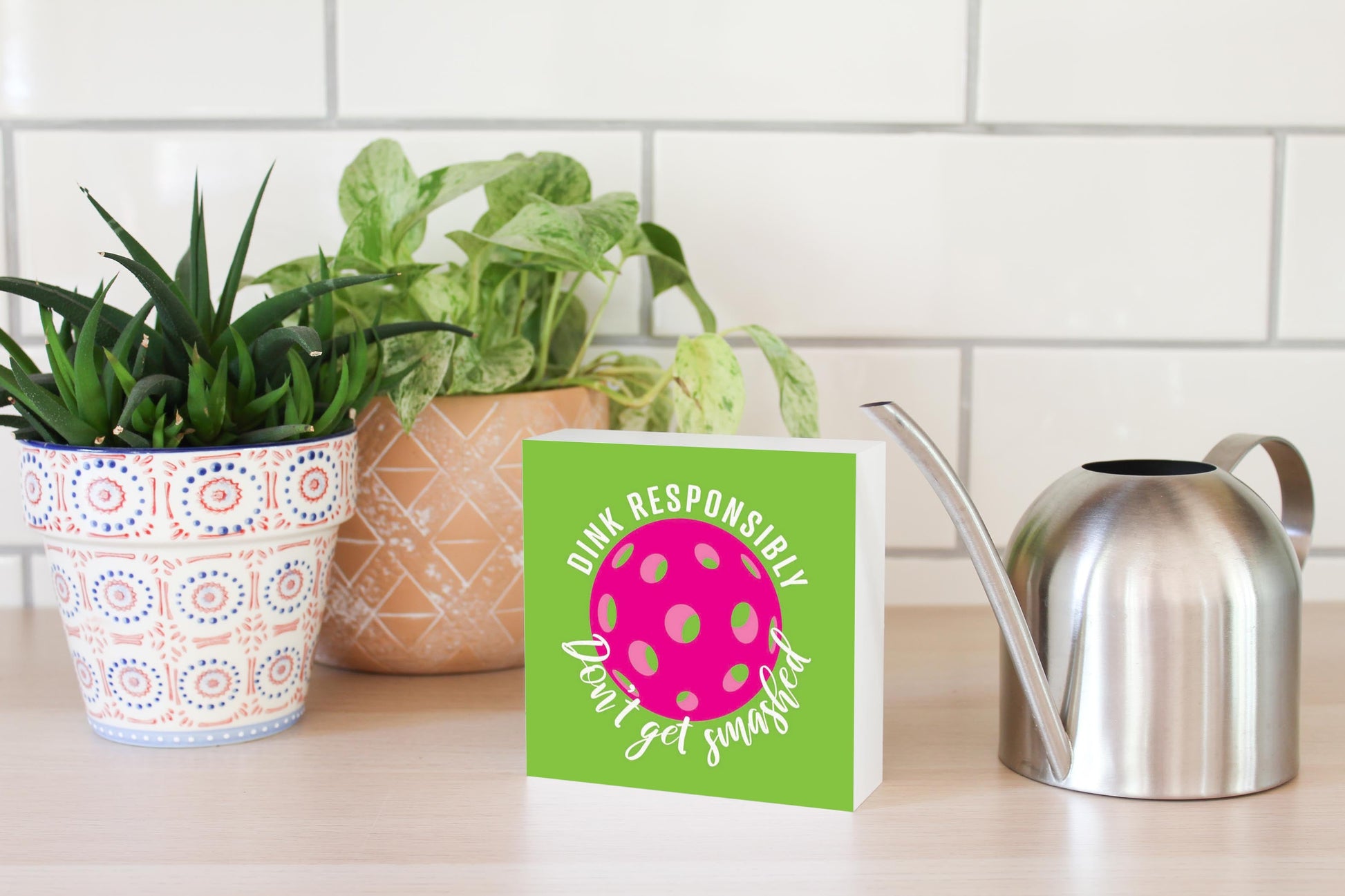 These 5 inch by 5 inch wood block signs fit any setting! They require no hardware, and the hollow back design feely stands on its own or can be hung on the wall. Perfect for desks, mantels, counters, or shelves. The beautiful texture of the wood and vibrancy of ink are a great pairing. Our eco-friendly, water-based ink provides beautiful color and dimension, and all our wood blocks are made from upcycled compressed wood fiber. Printed and packaged in the USA.