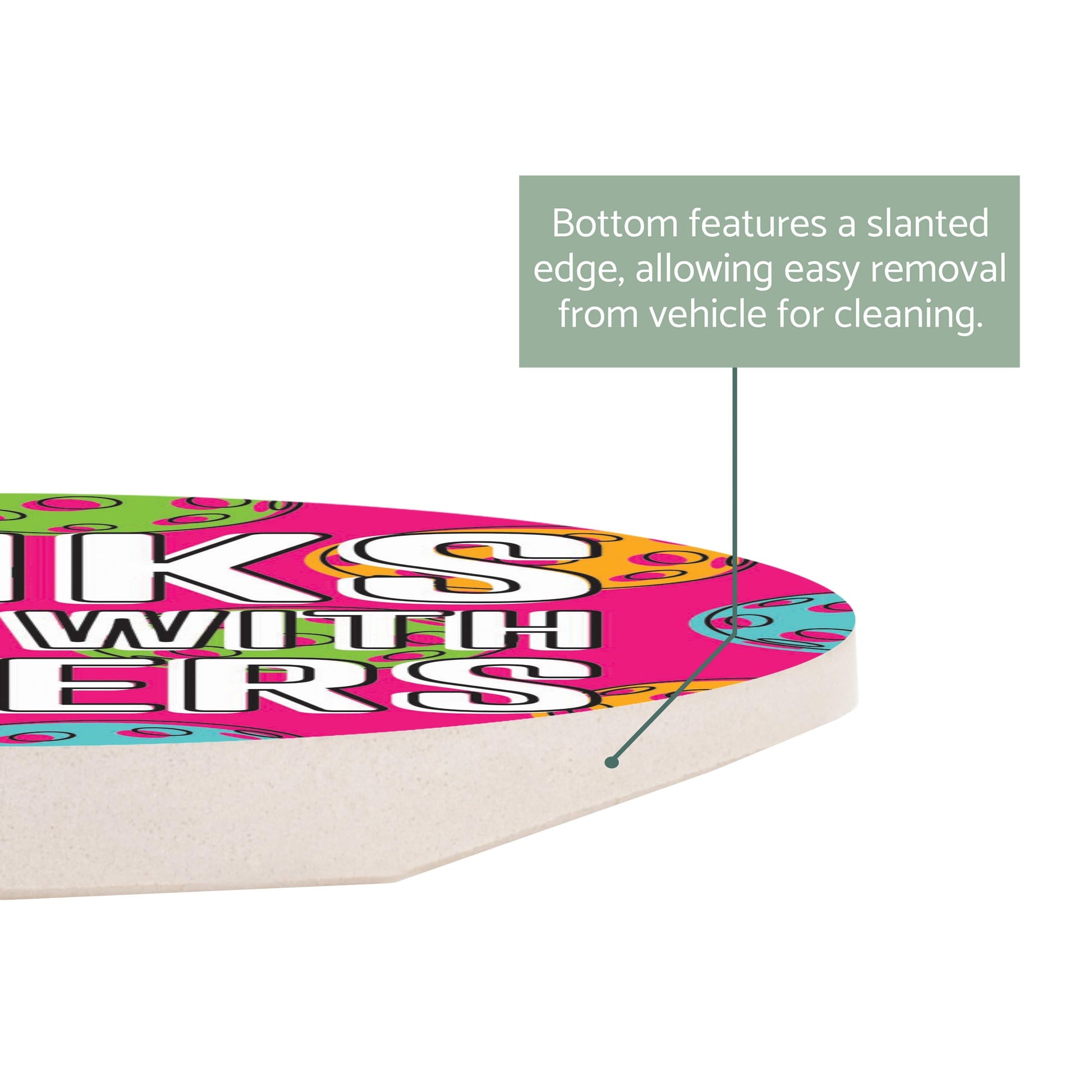 Car coasters are that little accessory that you didn’t know you needed but now consider an essential. Your cupholders are protected and kept clean by absorbing drips from your morning coffee to sticky juice boxes. The strategic divot edge allows you to easily pop it out and wipe clean. No more grime stuck in the cupholder abyss. While car coasters are wonderfully utilitarian, they also inject a little personality and design into the space you spend so much time in. Order an assortment to mix and match to the season or newest trends.