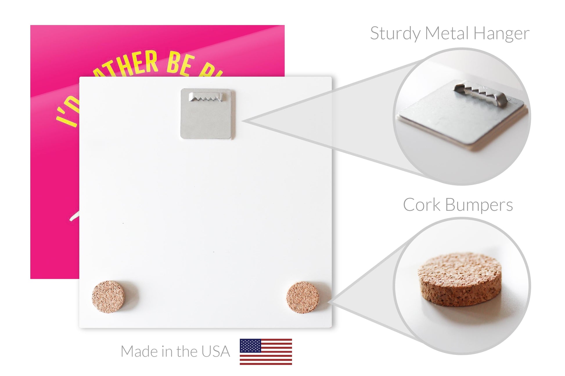 Beautiful and vibrant glass, dry erase. Use with any dry erase marker. Easy to mount on sawtooth hangers. Cork bumpers on the back protect the wall surface, provide stability while using the product, and give a modern levitating effect. Eco-friendly, water-based ink provides beautiful color and rich dimension. The high-quality tempered glass is sleek, modern, and durable. Protective, efficient packaging includes 100% recyclable cardboard.ย Proudly printed, packaged, and shipped from the USA.ย