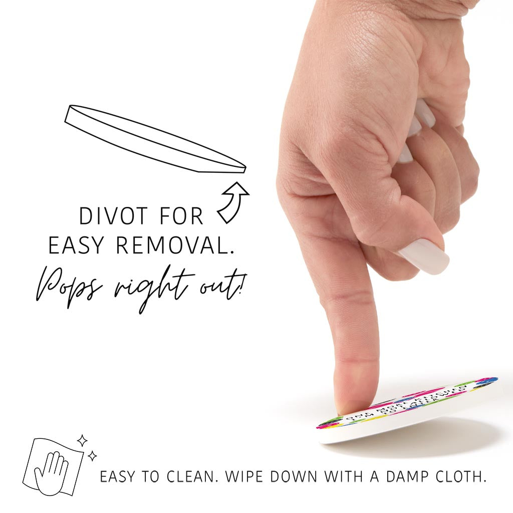 Merchandised in a versatile polybag 2-set, car coasters are that little accessory that you didn’t know you needed but now consider an essential. Your cupholders are protected and kept clean by absorbing drips from your morning coffee to sticky juice boxes. The strategic divot edge allows you to easily pop it out and wipe clean. No more grime stuck in the cupholder abyss. While car coasters are wonderfully utilitarian, they also inject a little personality and design into the space you spend so much time in. Order an assortment to mix and match to the season or newest trends.