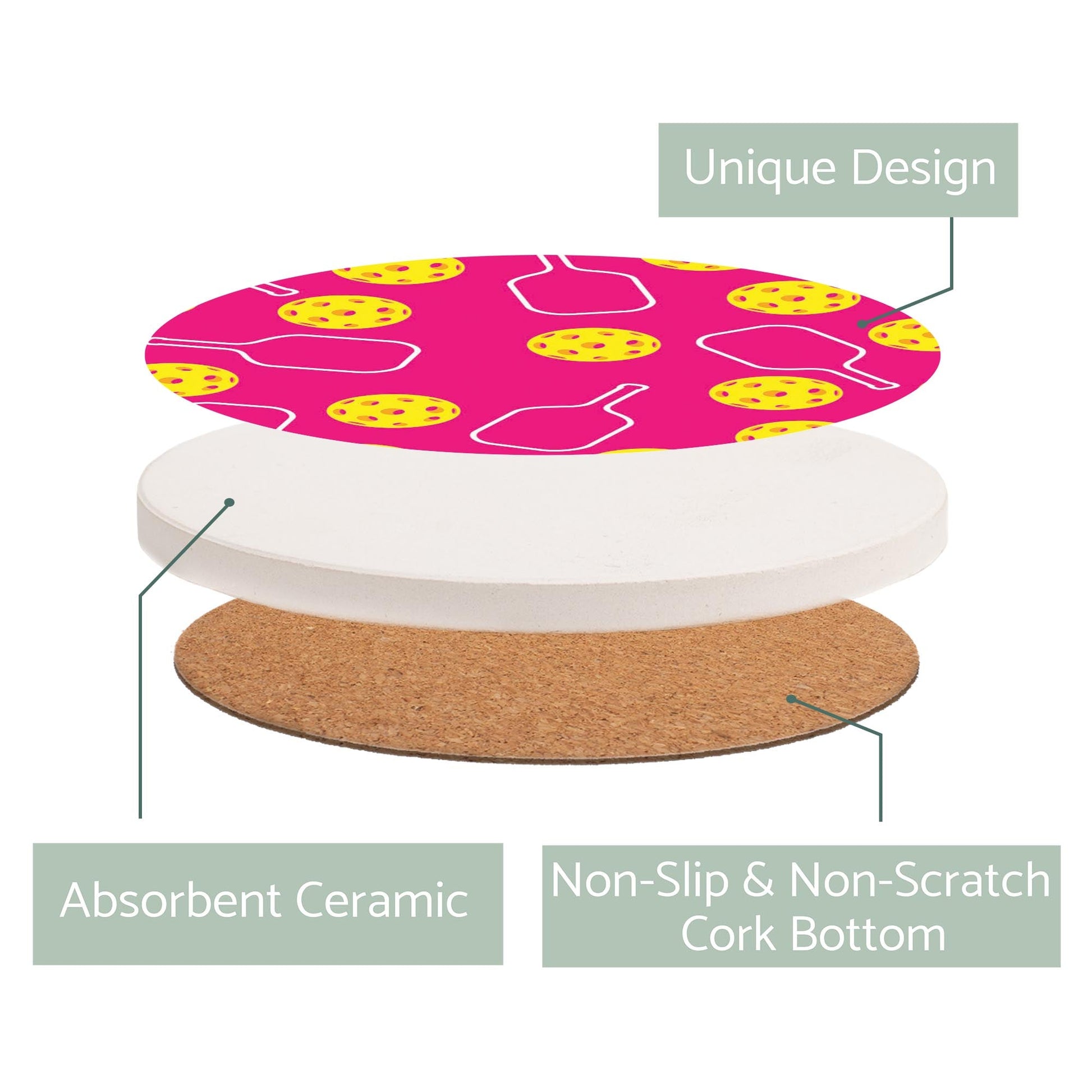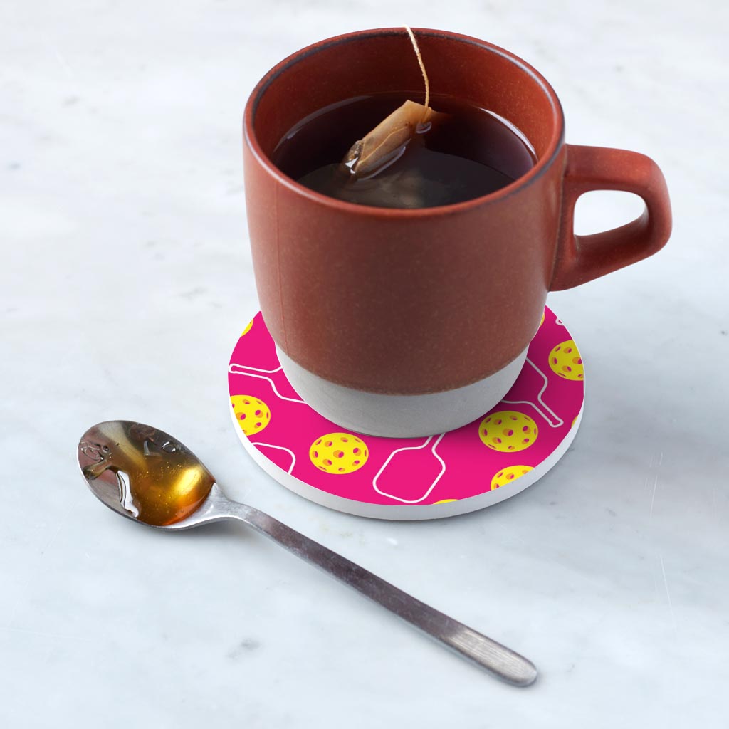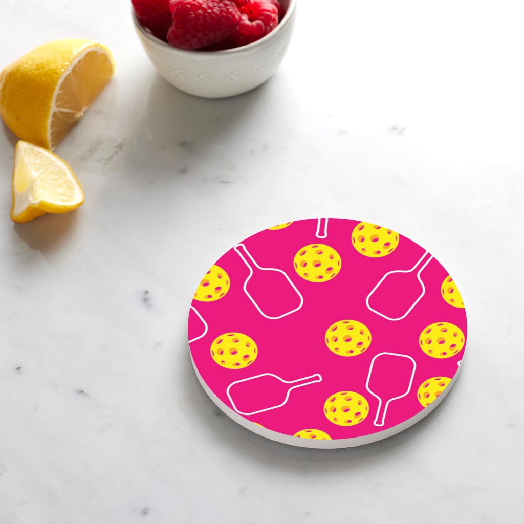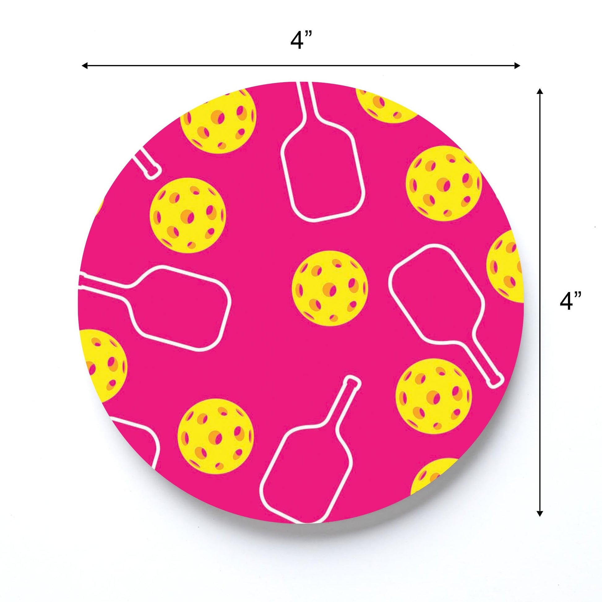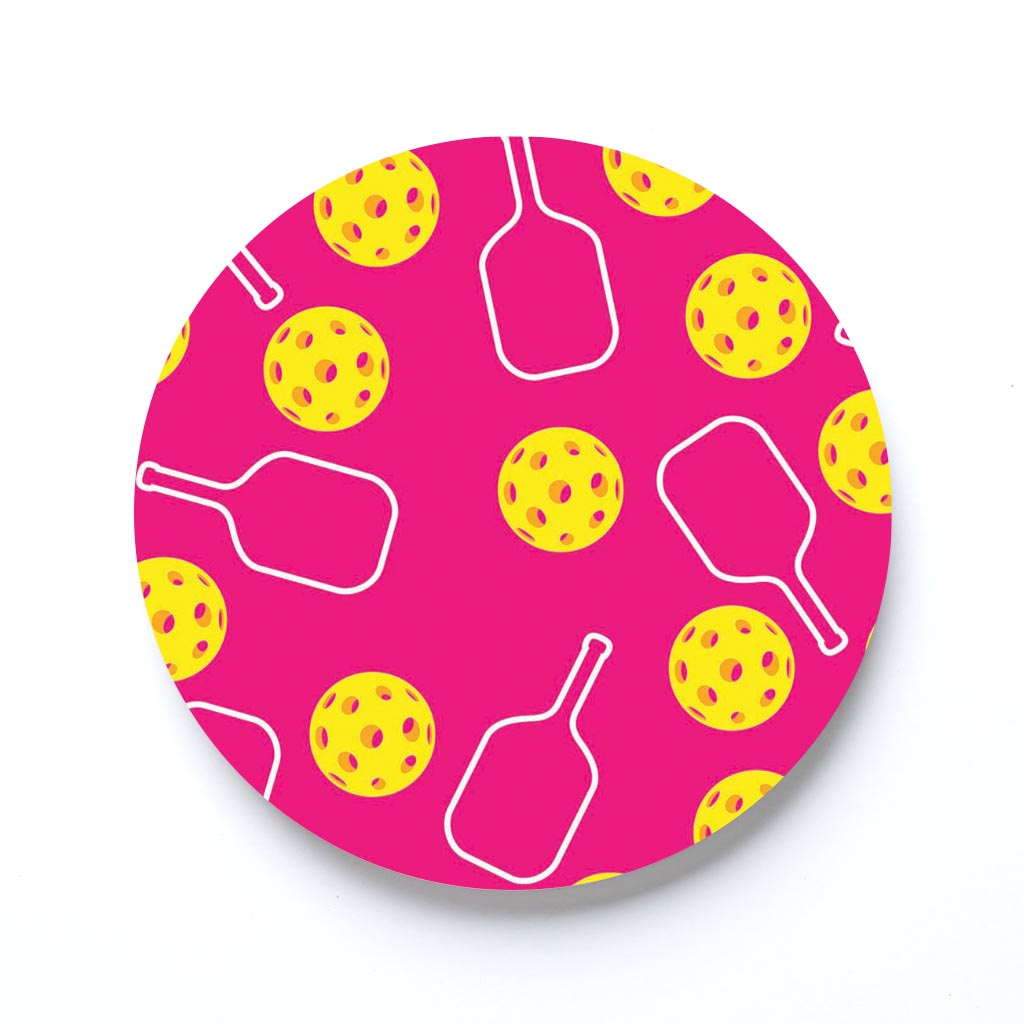 Neon Pickleball Paddle & Ball Pattern Pink | 4x4