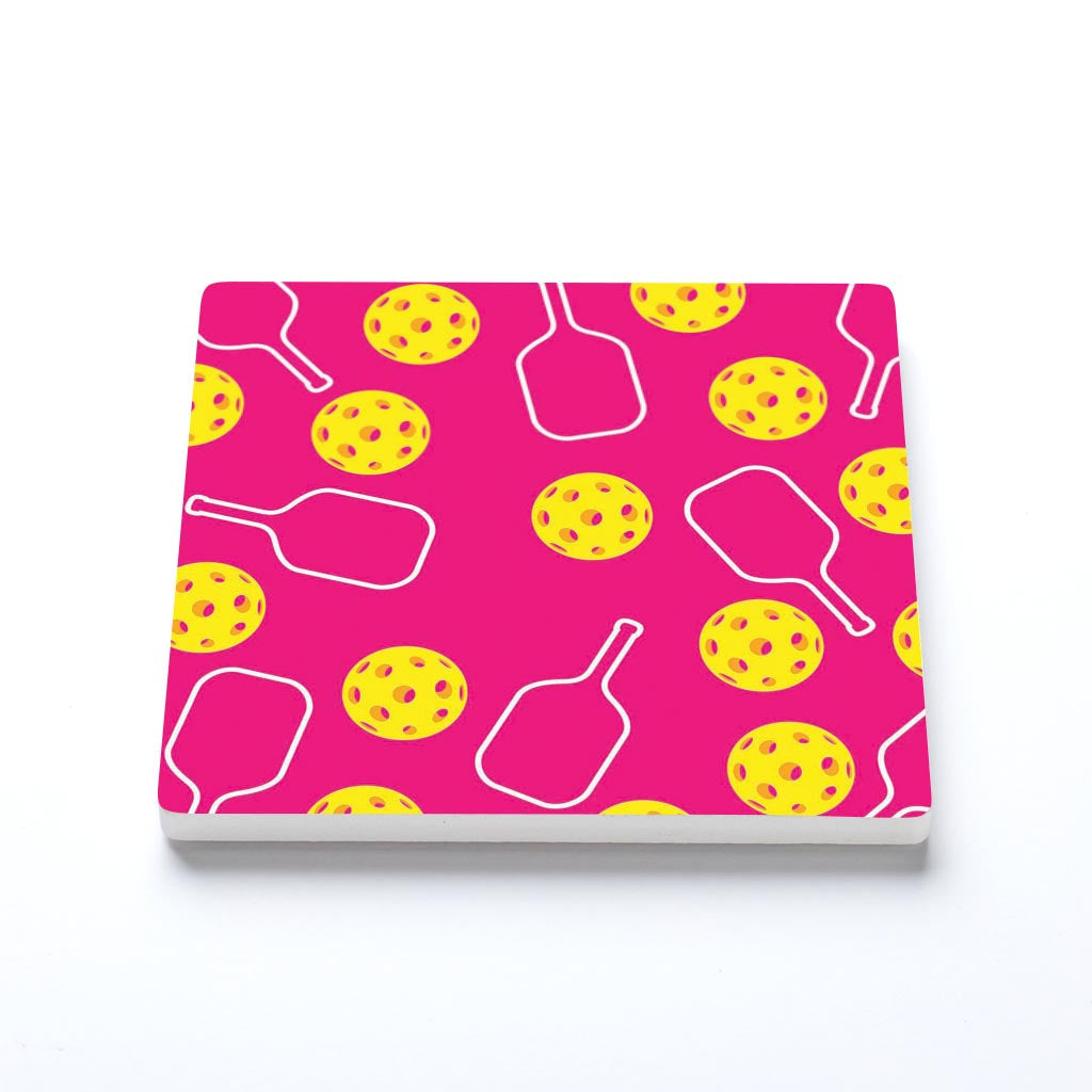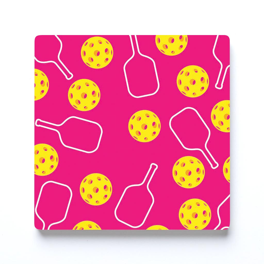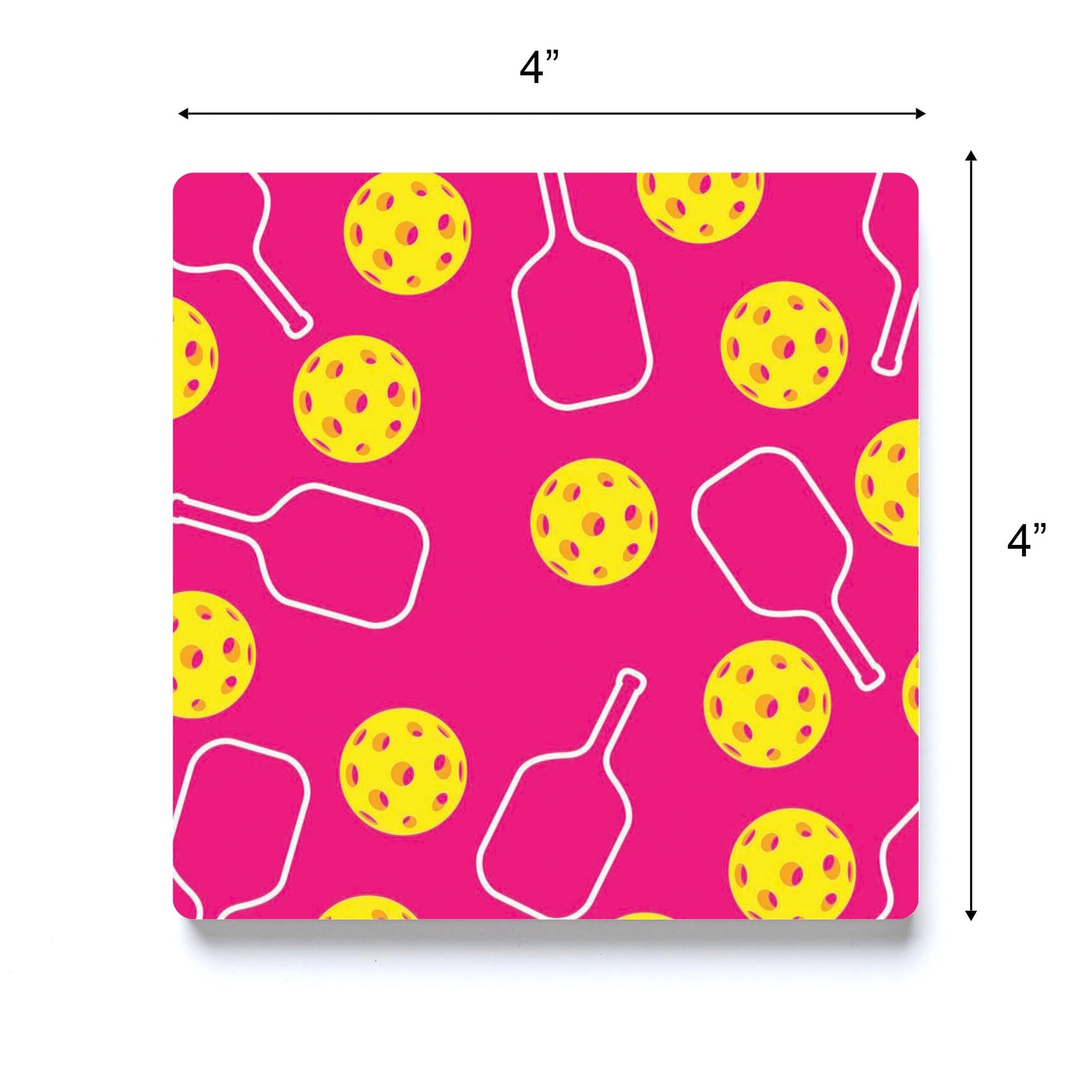Neon Pickleball Paddle & Ball Pattern Pink | 4x4