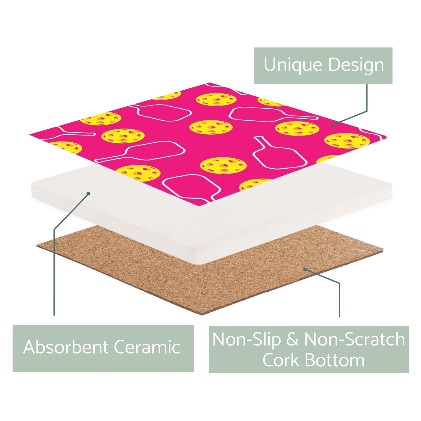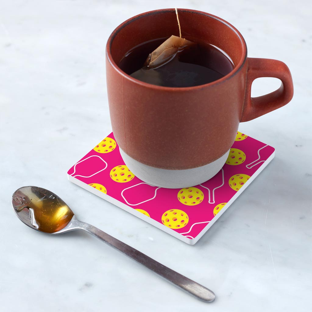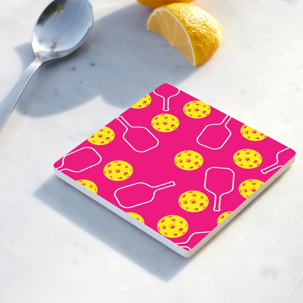 Neon Pickleball Paddle & Ball Pattern Pink | 4x4