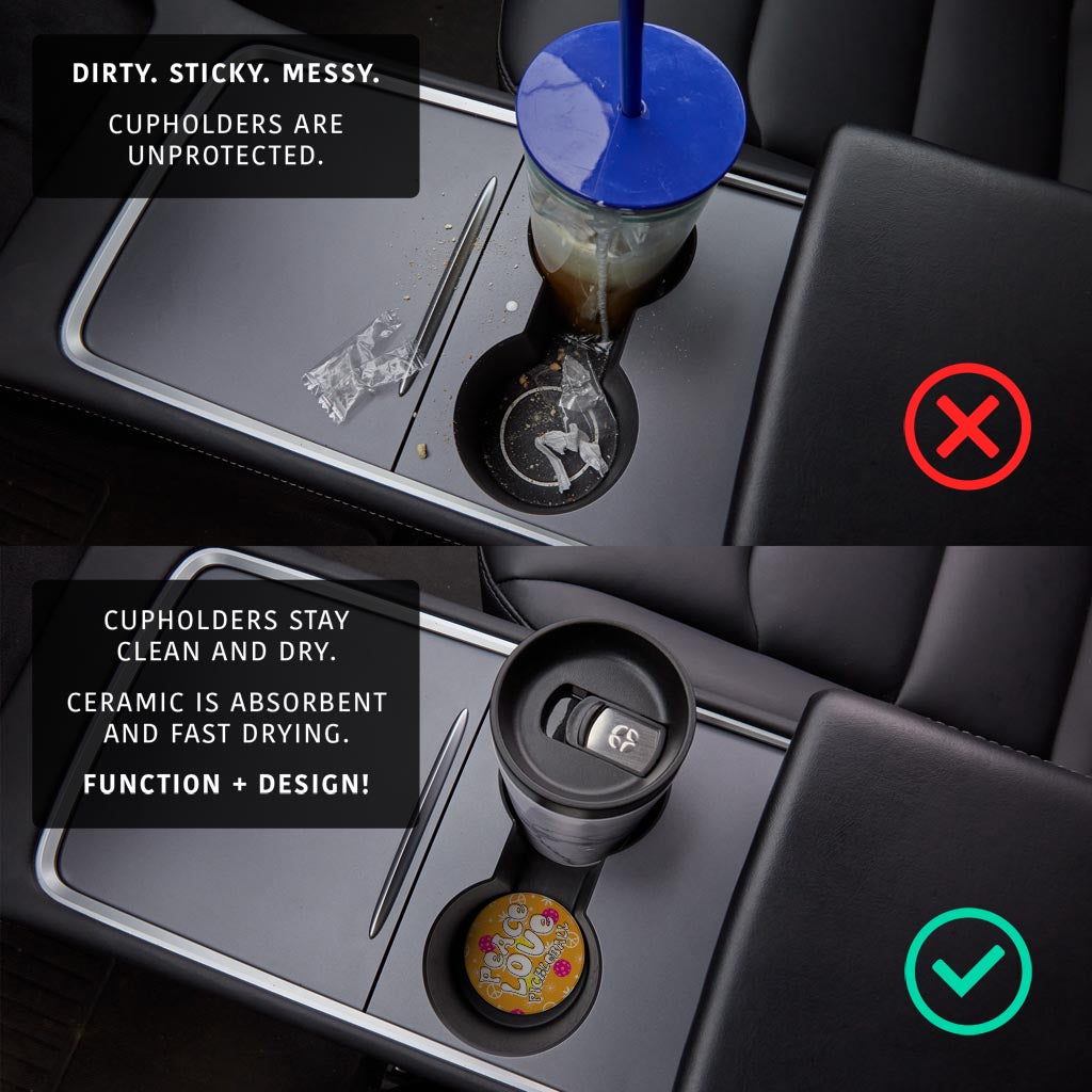 Merchandised in a versatile polybag 2-set, car coasters are that little accessory that you didn’t know you needed but now consider an essential. Your cupholders are protected and kept clean by absorbing drips from your morning coffee to sticky juice boxes. The strategic divot edge allows you to easily pop it out and wipe clean. No more grime stuck in the cupholder abyss. While car coasters are wonderfully utilitarian, they also inject a little personality and design into the space you spend so much time in. Order an assortment to mix and match to the season or newest trends.