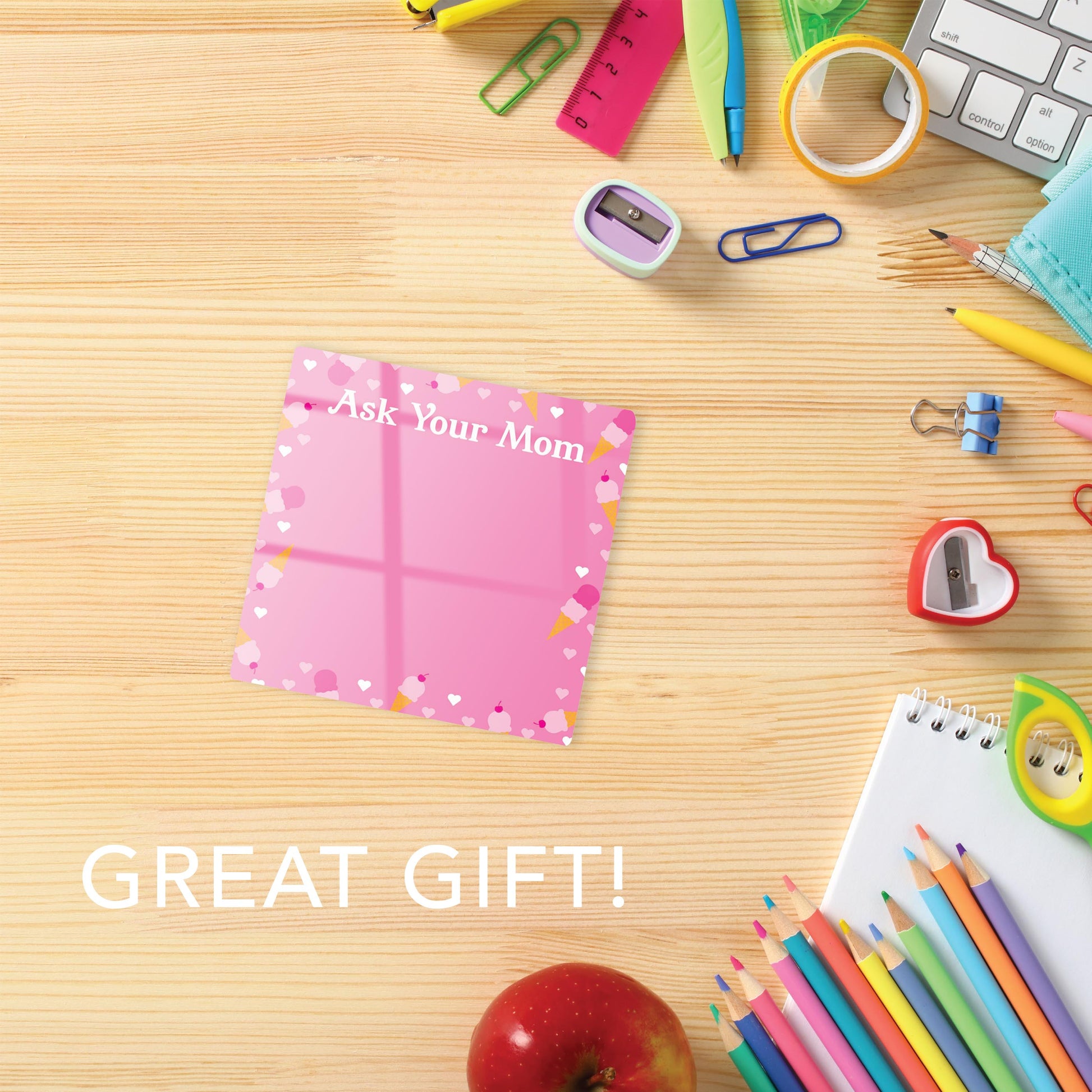 Pink Dream Ice Cream and Hearts Ask Your Mom | 4x4