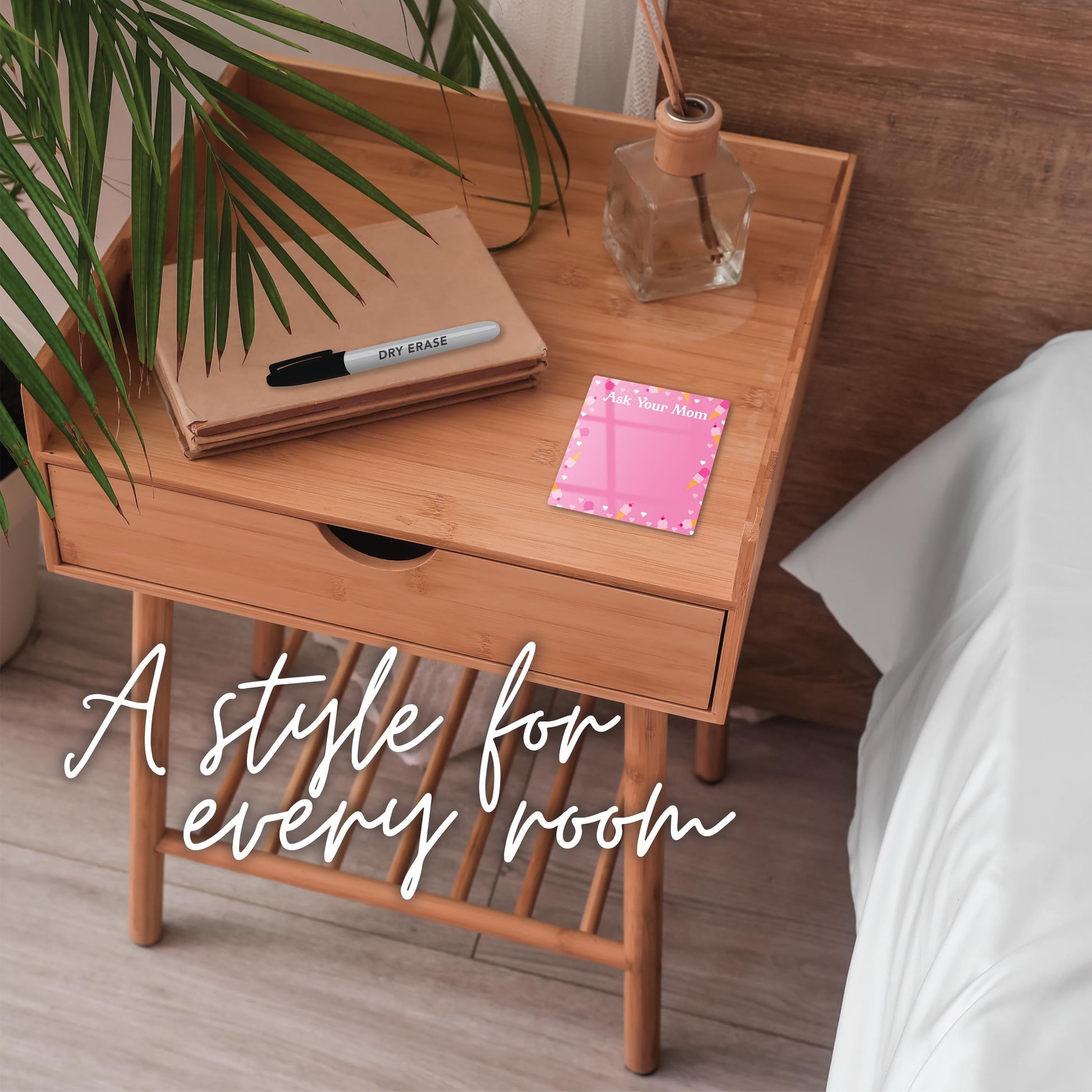Handy and artsy! Clear Reminders are small, dry erase glass tiles, which are perfect to jot down a note or two on! Vibrant and beautiful,they’re easy to wipe clean and provide a little pop of fun décor to switch in and out. Use with any dry erase marker. It’s a win/win when art meets practicality and makes for a great gift!