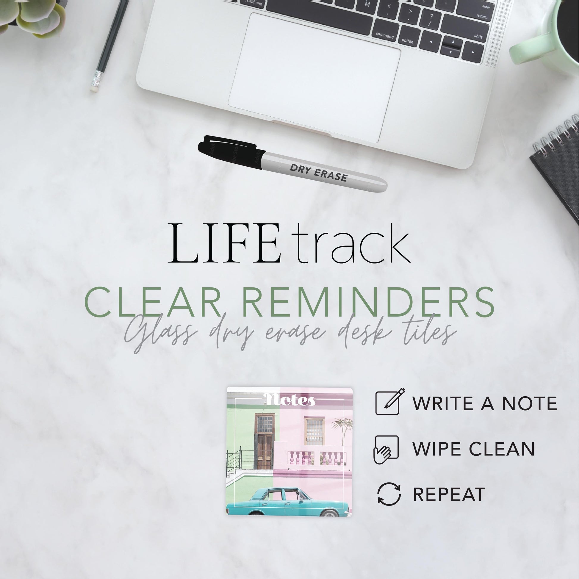 Handy and artsy! Clear Reminders are small, dry erase glass tiles, which are perfect to jot down a note or two on! Vibrant and beautiful,they’re easy to wipe clean and provide a little pop of fun décor to switch in and out. Use with any dry erase marker. It’s a win/win when art meets practicality and makes for a great gift!