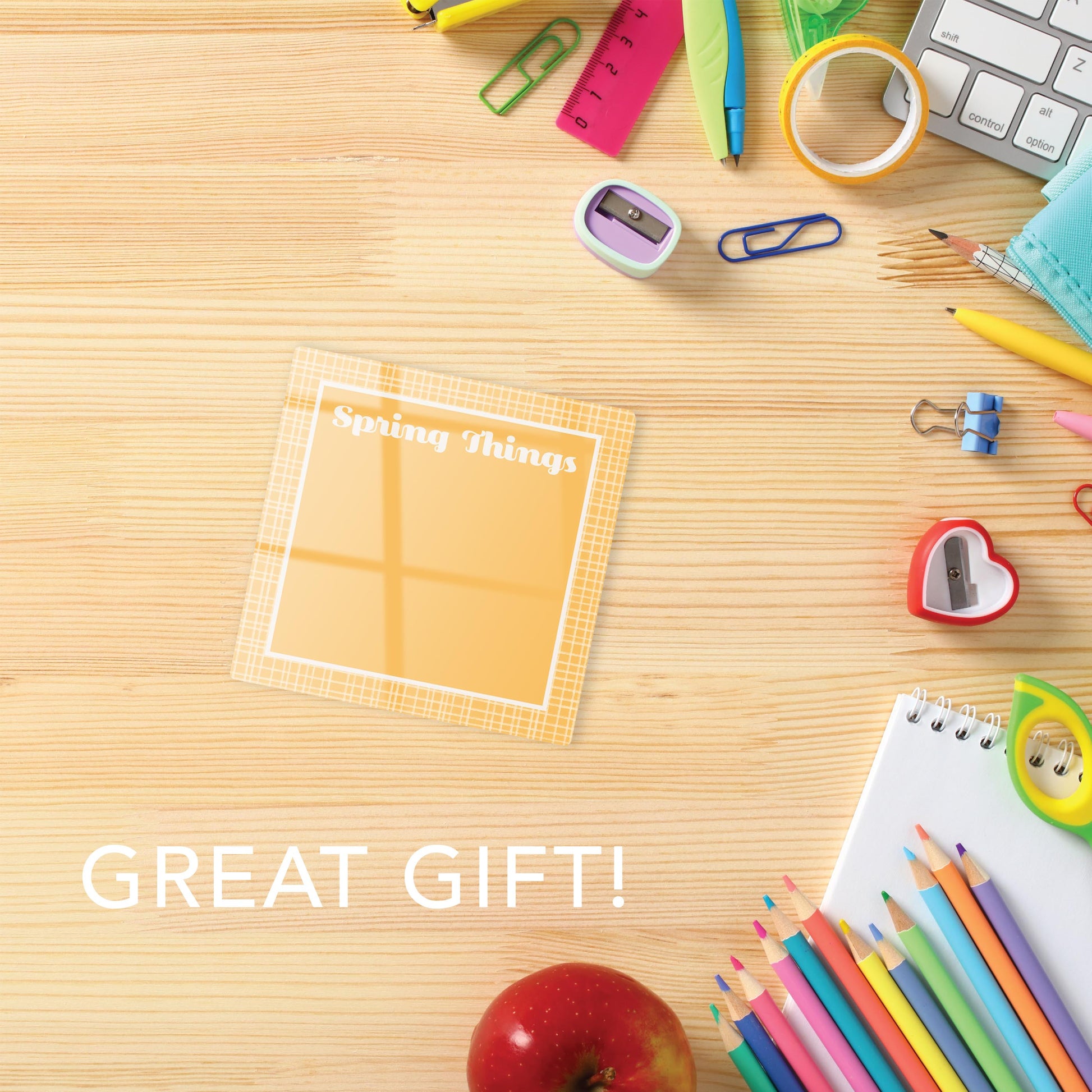 Handy and artsy! Clear Reminders are small, dry erase glass tiles, which are perfect to jot down a note or two on! Vibrant and beautiful,they’re easy to wipe clean and provide a little pop of fun décor to switch in and out. Use with any dry erase marker. It’s a win/win when art meets practicality and makes for a great gift!