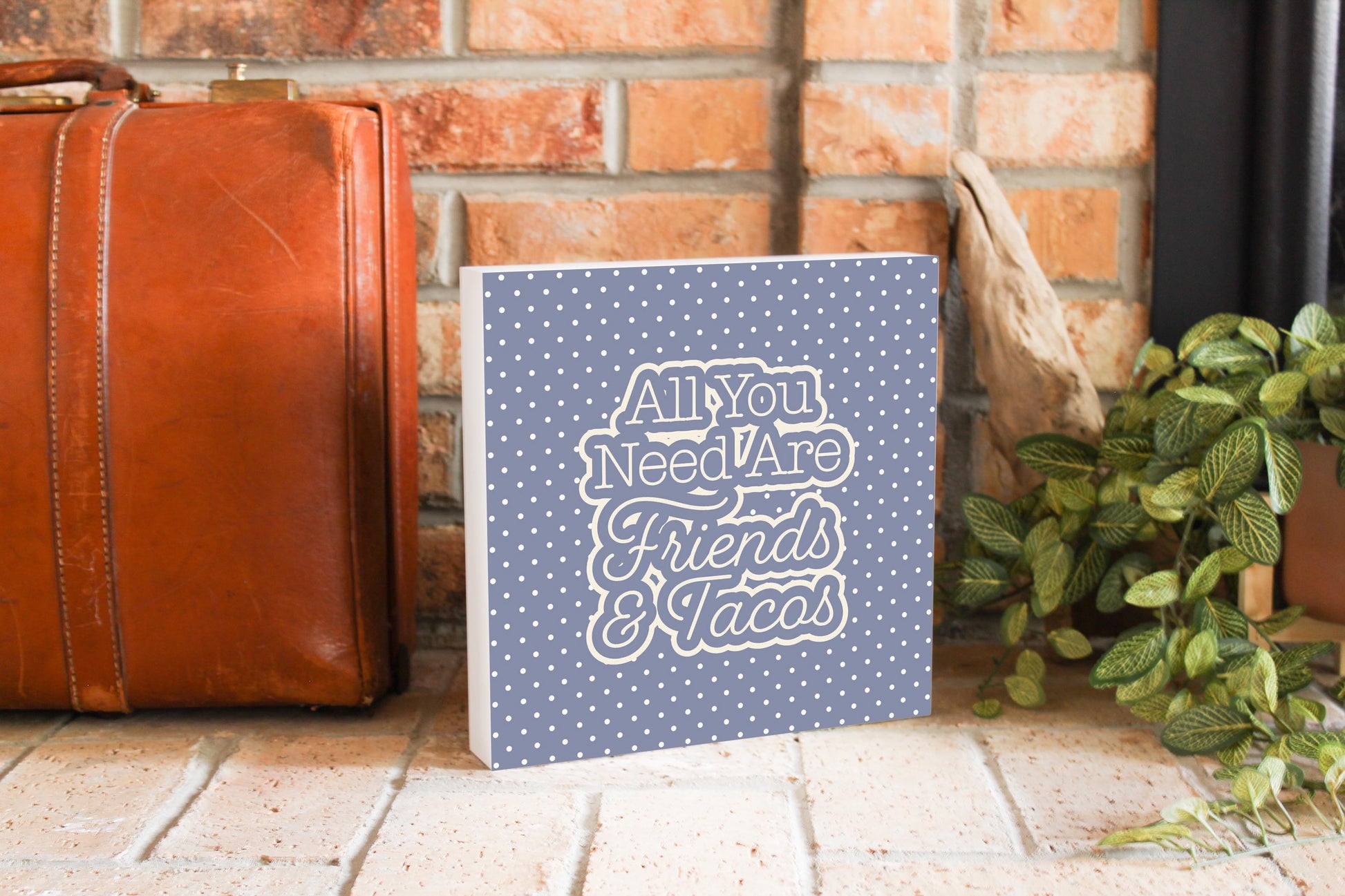These 10 inch by 10 inch wood block signs fit any setting! They require no hardware, and the hollow back design feely stands on its own or can be hung on the wall. Perfect for desks, mantels, counters, or shelves. The beautiful texture of the wood and vibrancy of ink are a great pairing. Our eco-friendly, water-based ink provides beautiful color and dimension, and all our wood blocks are made from upcycled compressed wood fiber. Printed and packaged in the USA.