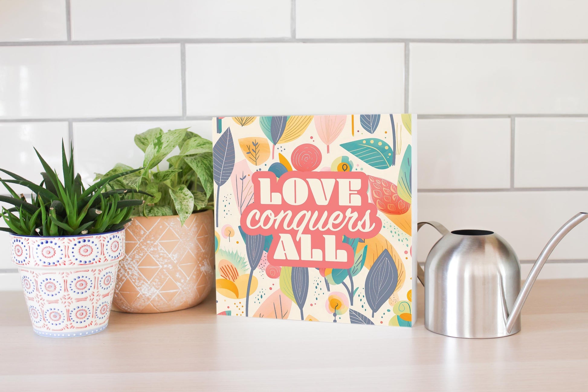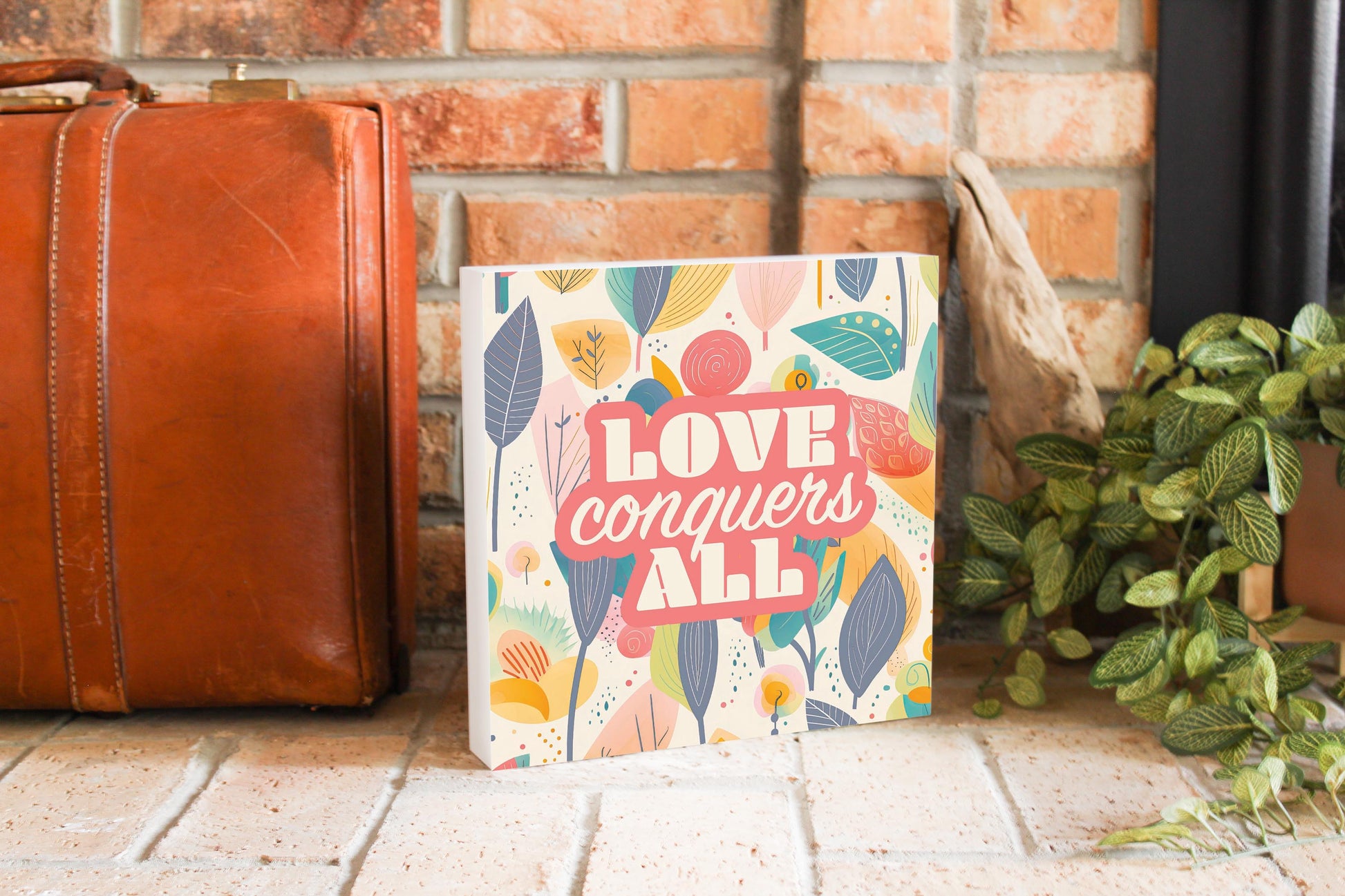 These 10 inch by 10 inch wood block signs fit any setting! They require no hardware, and the hollow back design feely stands on its own or can be hung on the wall. Perfect for desks, mantels, counters, or shelves. The beautiful texture of the wood and vibrancy of ink are a great pairing. Our eco-friendly, water-based ink provides beautiful color and dimension, and all our wood blocks are made from upcycled compressed wood fiber. Printed and packaged in the USA.