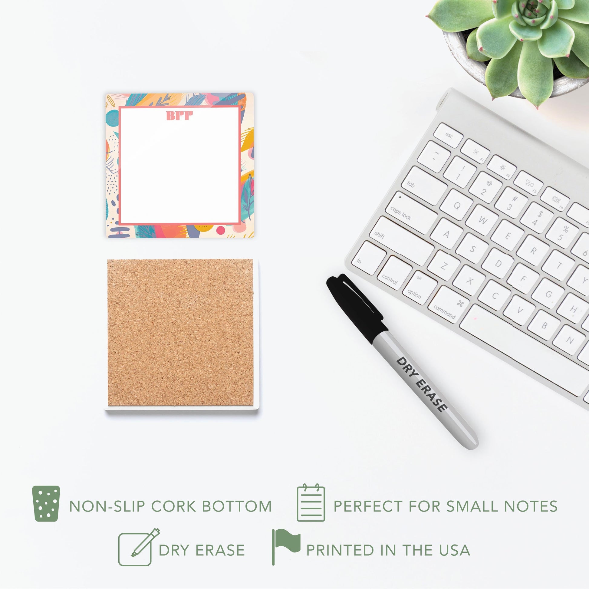 Handy and artsy! Clear Reminders are small, dry erase glass tiles, which are perfect to jot down a note or two on! Vibrant and beautiful,they’re easy to wipe clean and provide a little pop of fun décor to switch in and out. Use with any dry erase marker. It’s a win/win when art meets practicality and makes for a great gift!