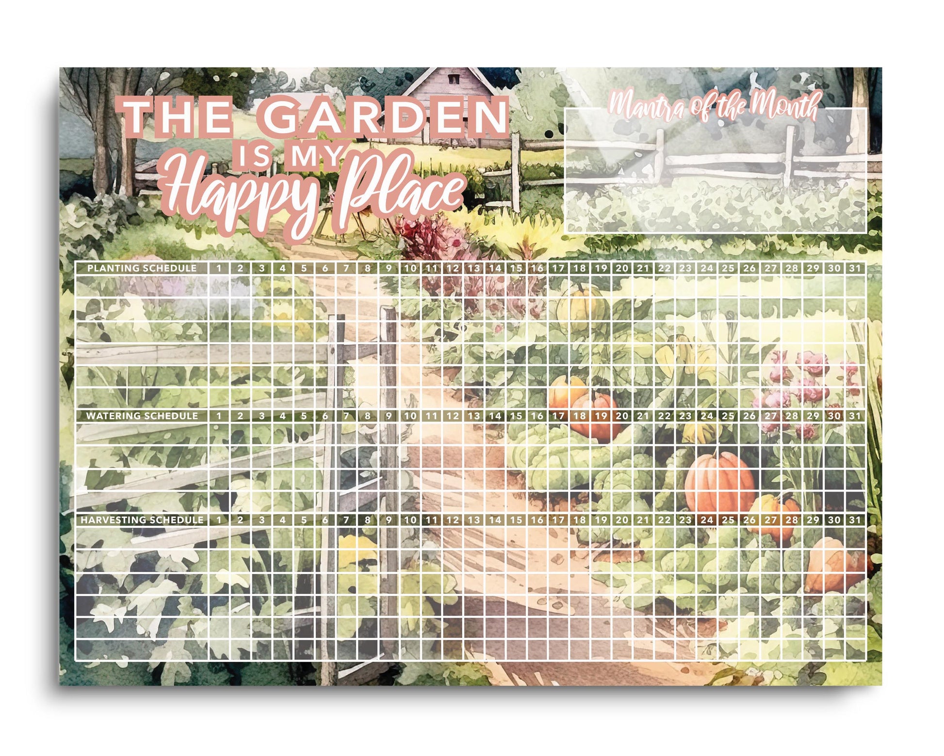 Watercolor Garden Planting and Watering Schedule | 16x12