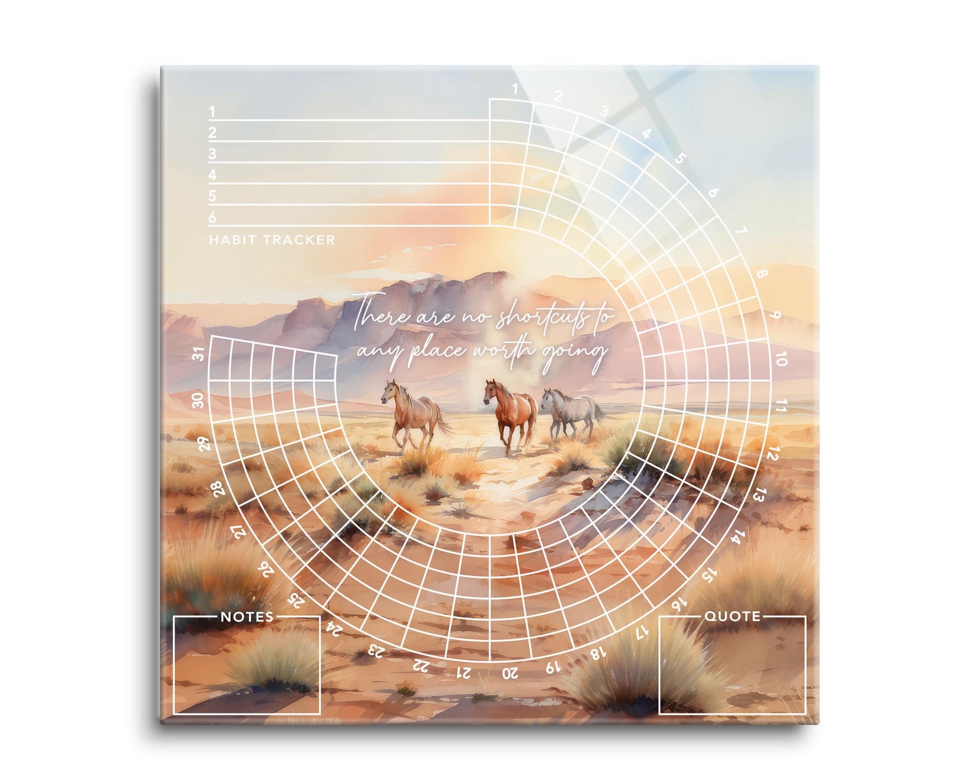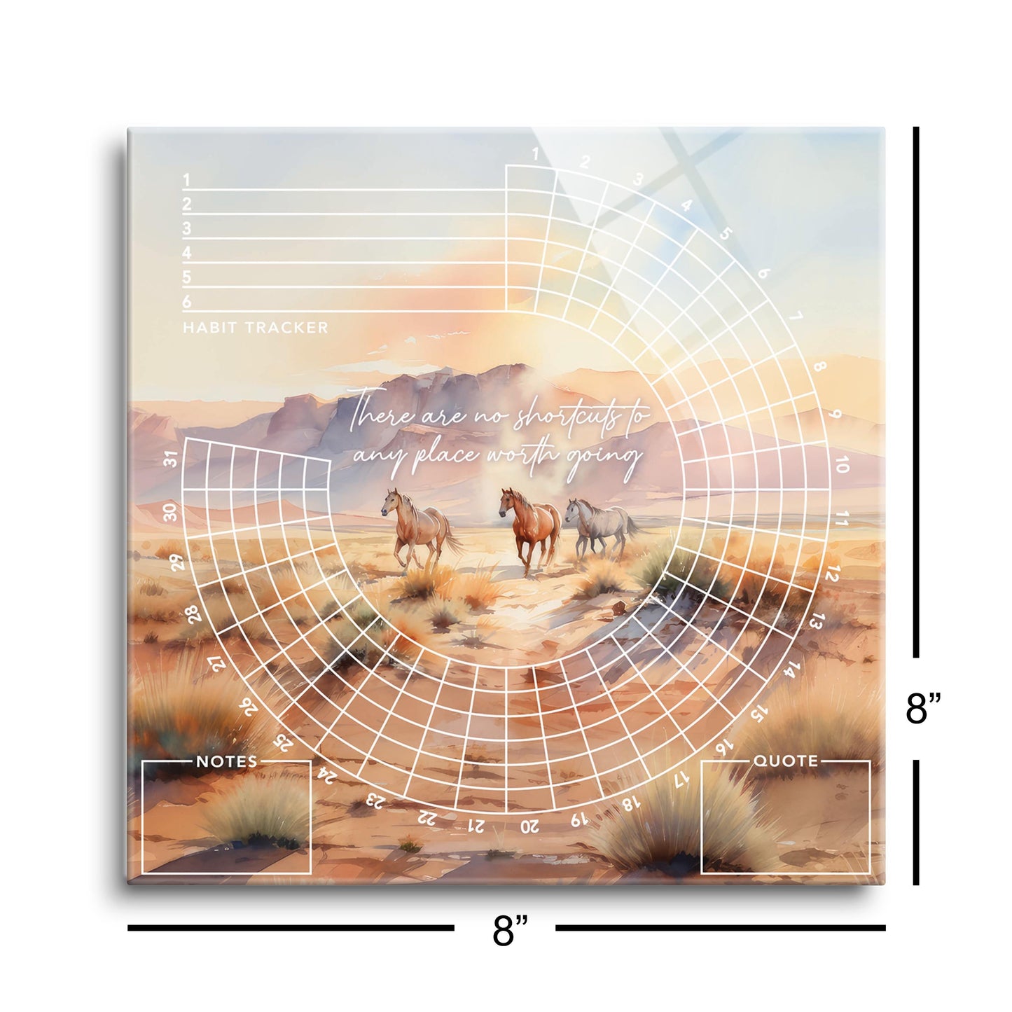 Change your life with our LIFEtrack habit trackers. Beautiful and vibrant glass, dry erase. Use with any dry erase marker. Easy to mount on sawtooth hangers. Cork bumpers on the back protect the wall surface, provide stability while using the product, and give a modern levitating effect. Eco-friendly, water-based ink provides beautiful color and rich dimension. The high-quality tempered glass is sleek, modern, and durable. Protective, efficient packaging includes 100% recyclable cardboard. Proudly printed, packaged, and shipped from the USA.