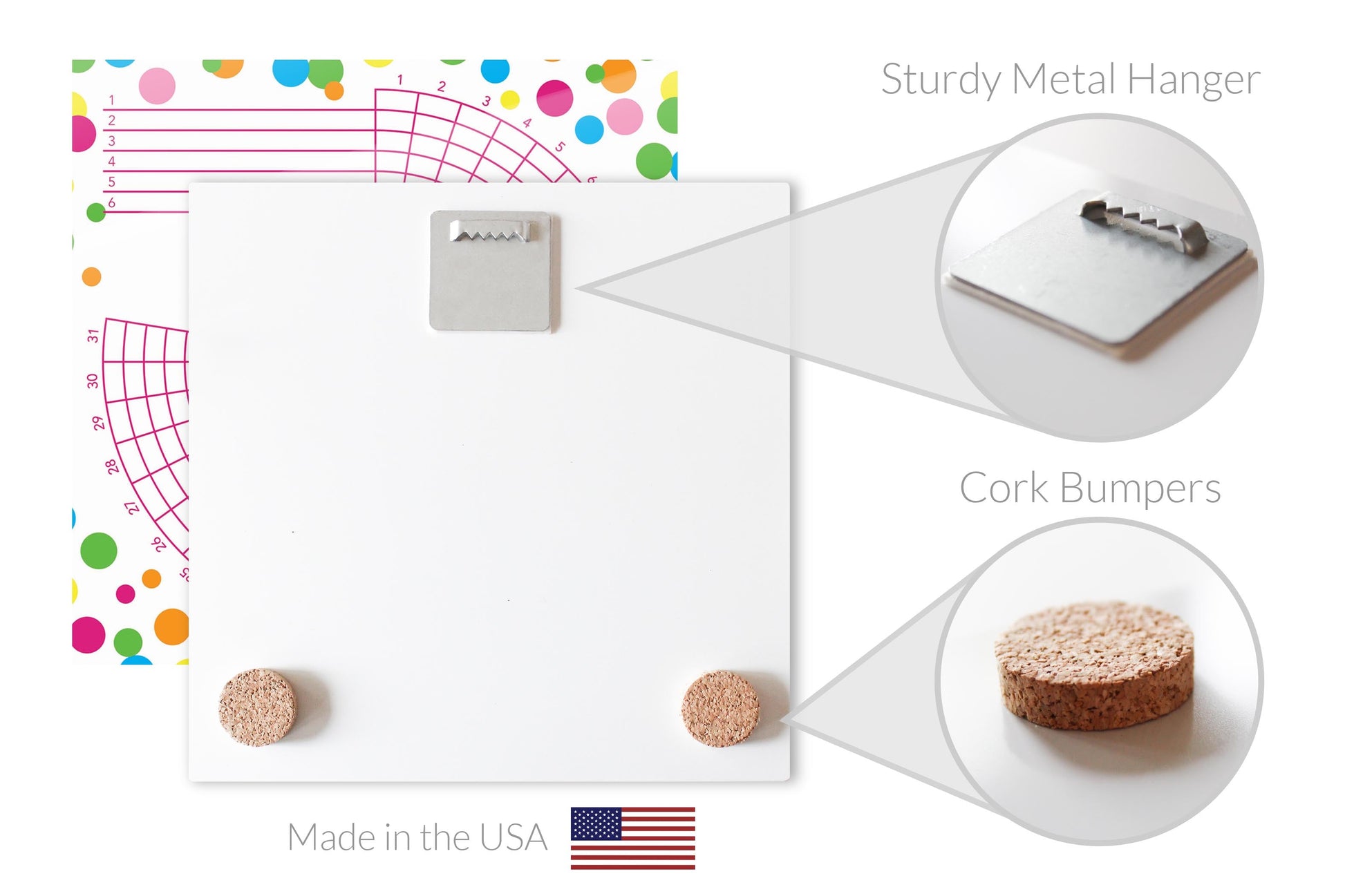 Change your life with our LIFEtrack habit trackers. Beautiful and vibrant glass, dry erase. Use with any dry erase marker. Easy to mount on sawtooth hangers. Cork bumpers on the back protect the wall surface, provide stability while using the product, and give a modern levitating effect. Eco-friendly, water-based ink provides beautiful color and rich dimension. The high-quality tempered glass is sleek, modern, and durable. Protective, efficient packaging includes 100% recyclable cardboard. Proudly printed, packaged, and shipped from the USA.